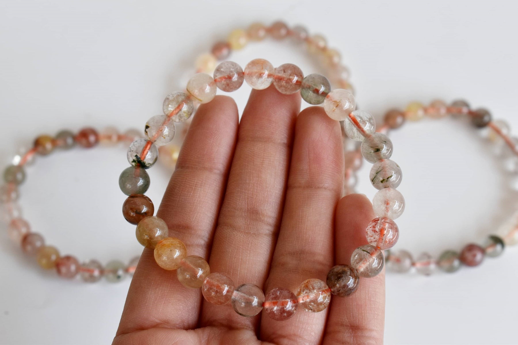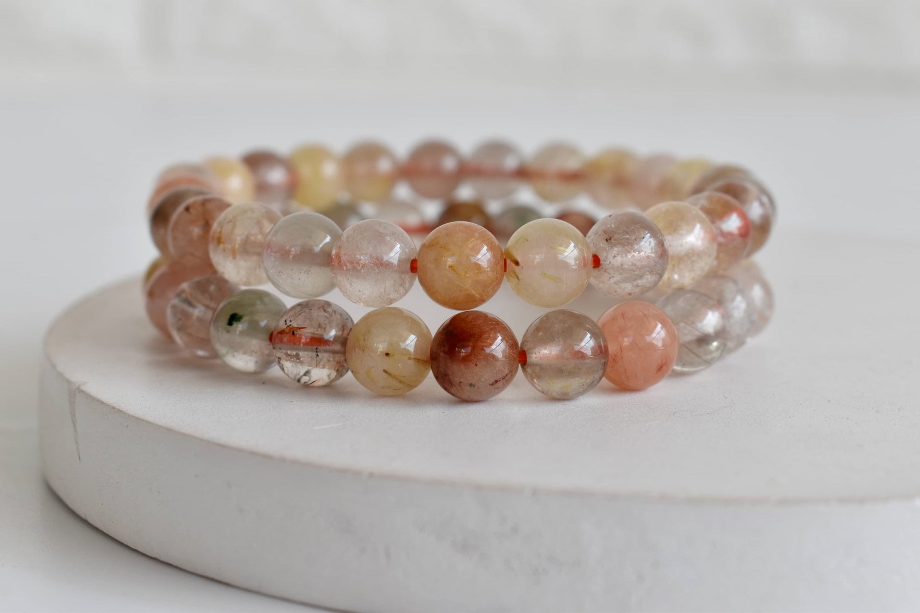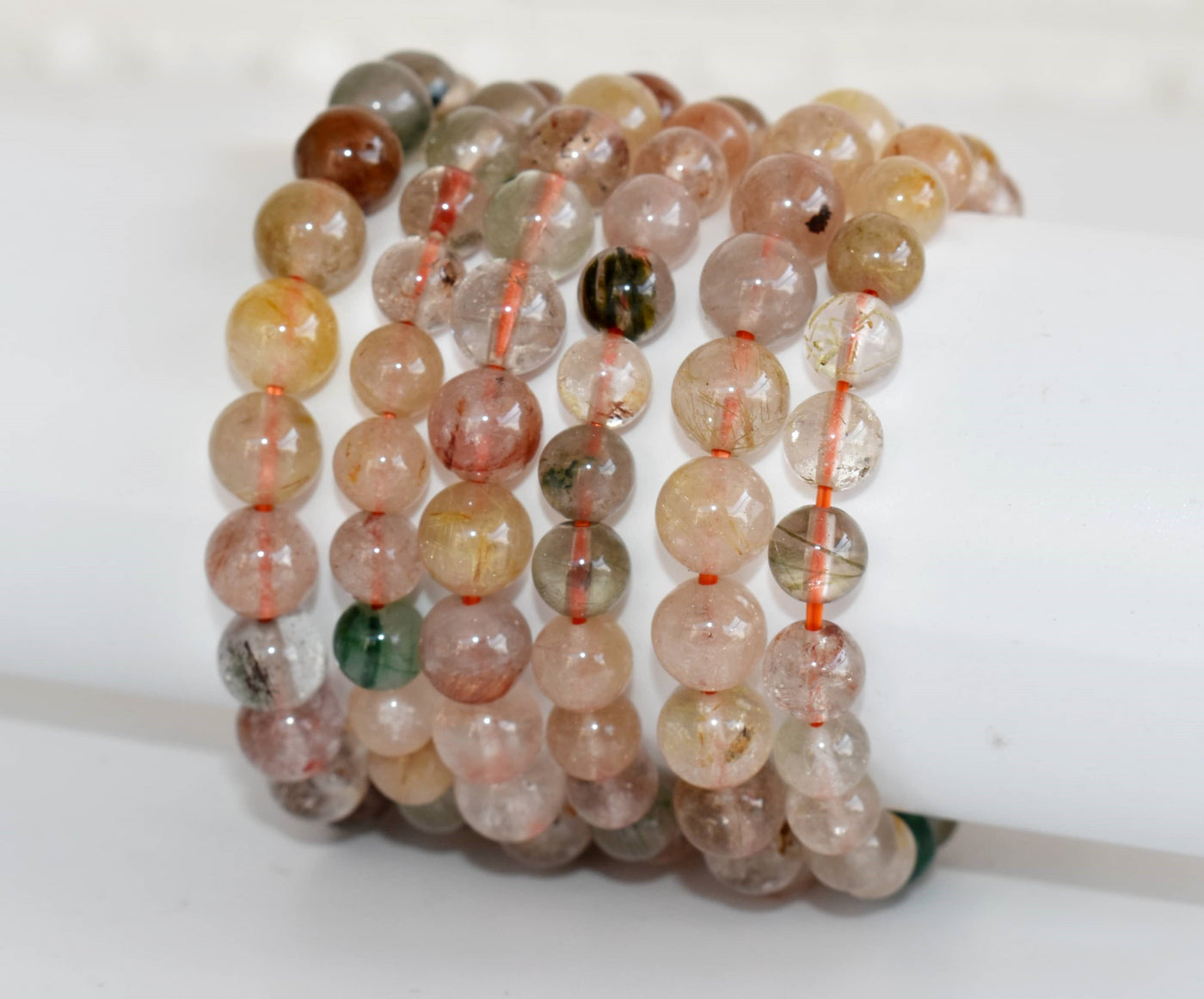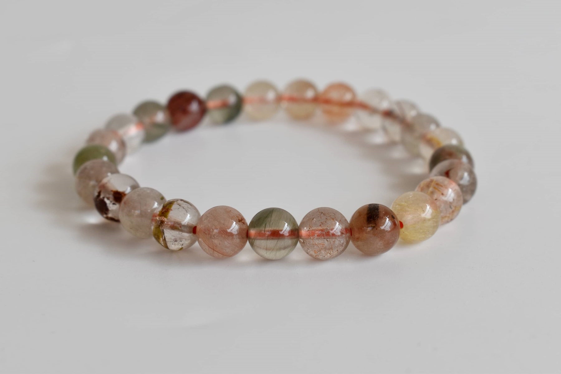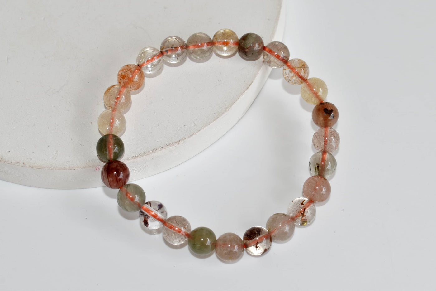 HANDMADE Gorgeous Multi Rutile Beaded Bracelet with Brass Silver Charms.