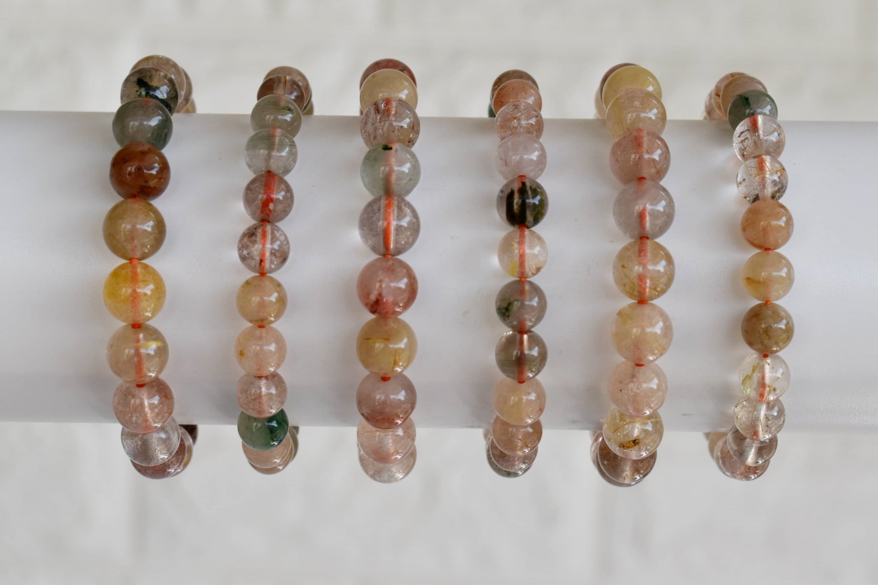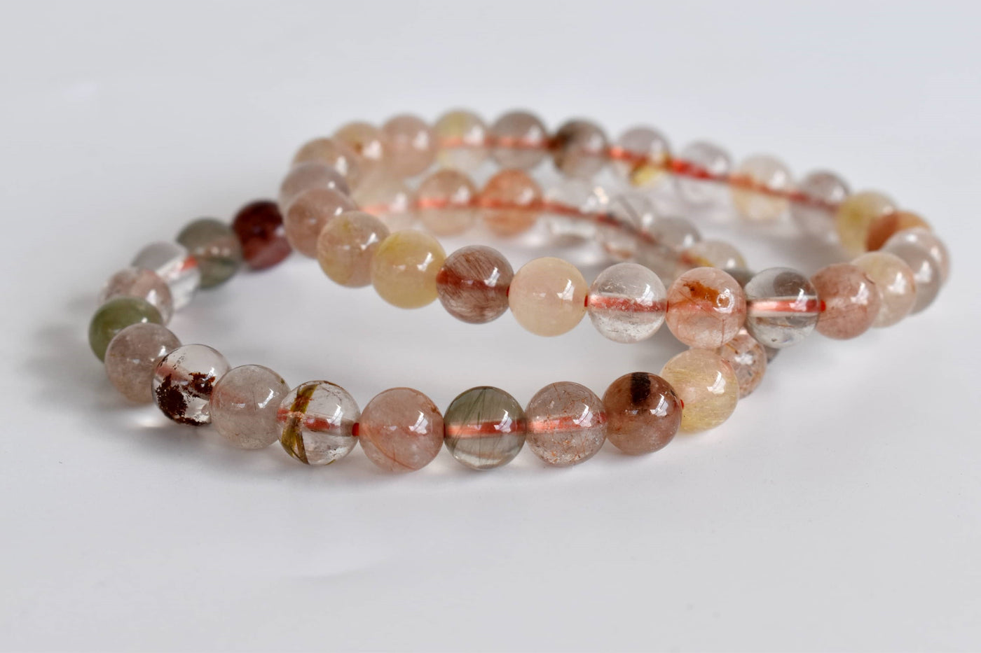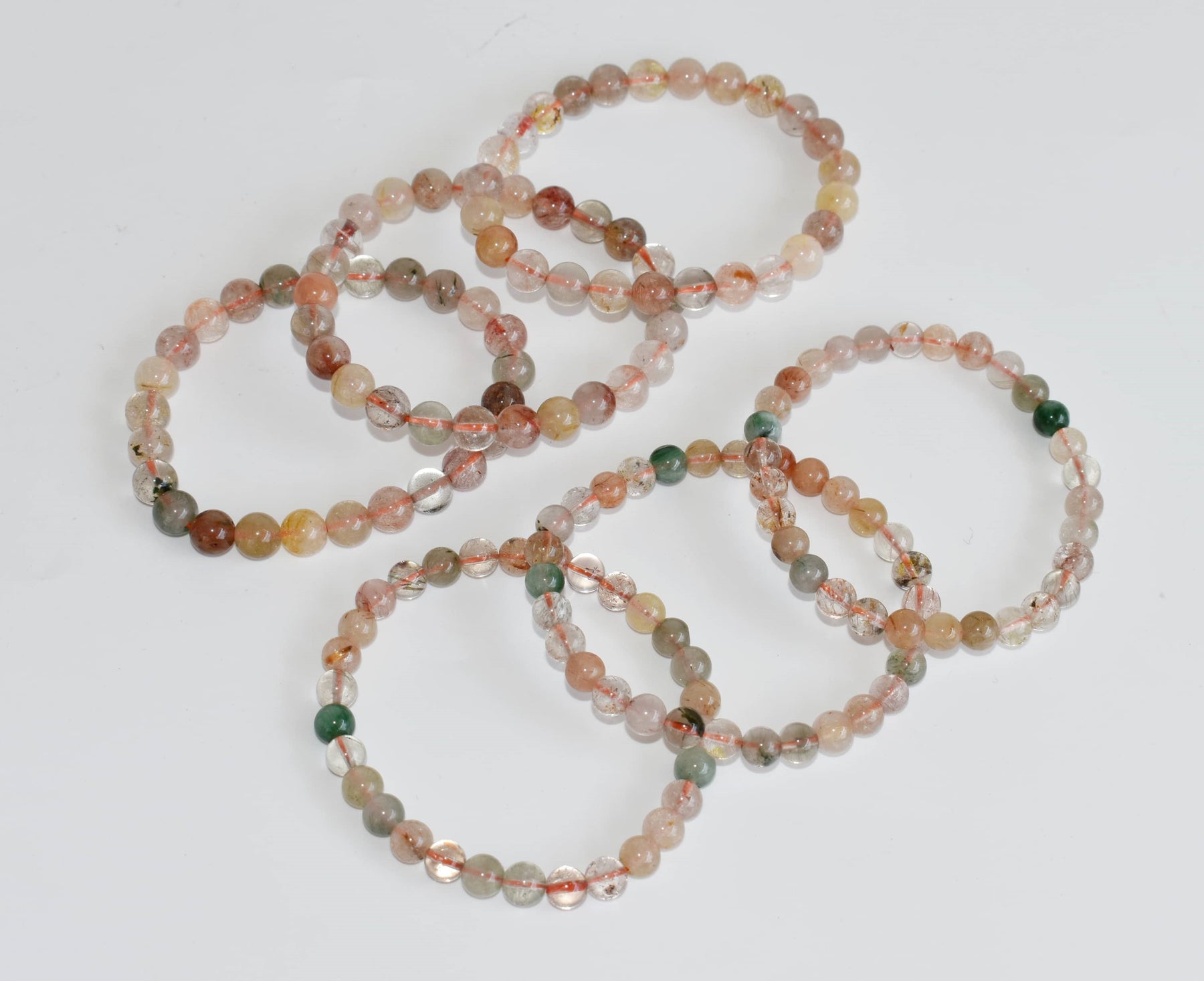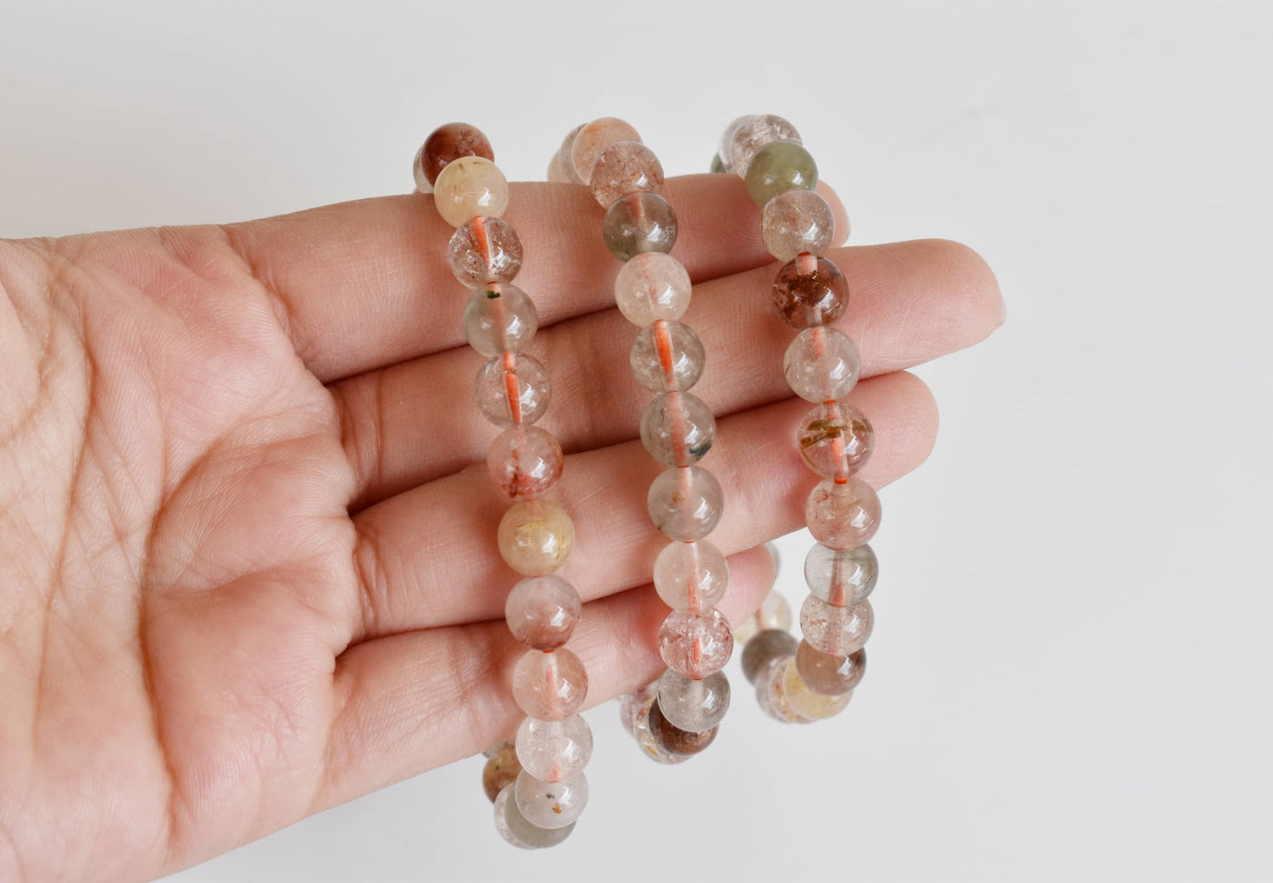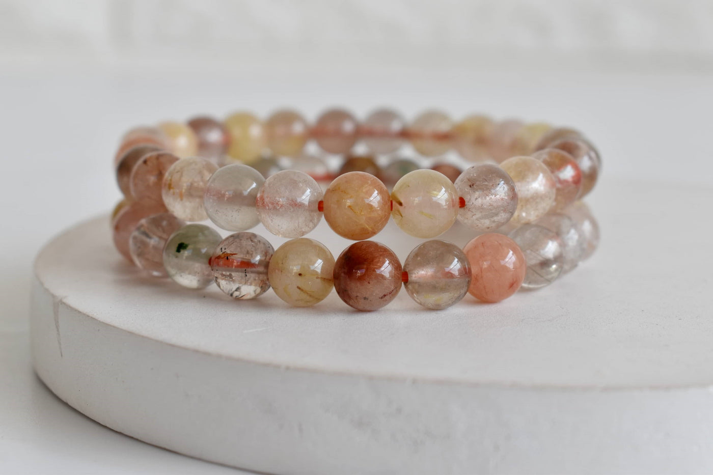 HANDMADE Gorgeous Multi Rutile Beaded Bracelet with Brass Silver Charms.