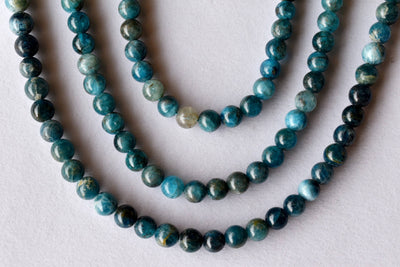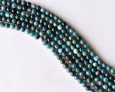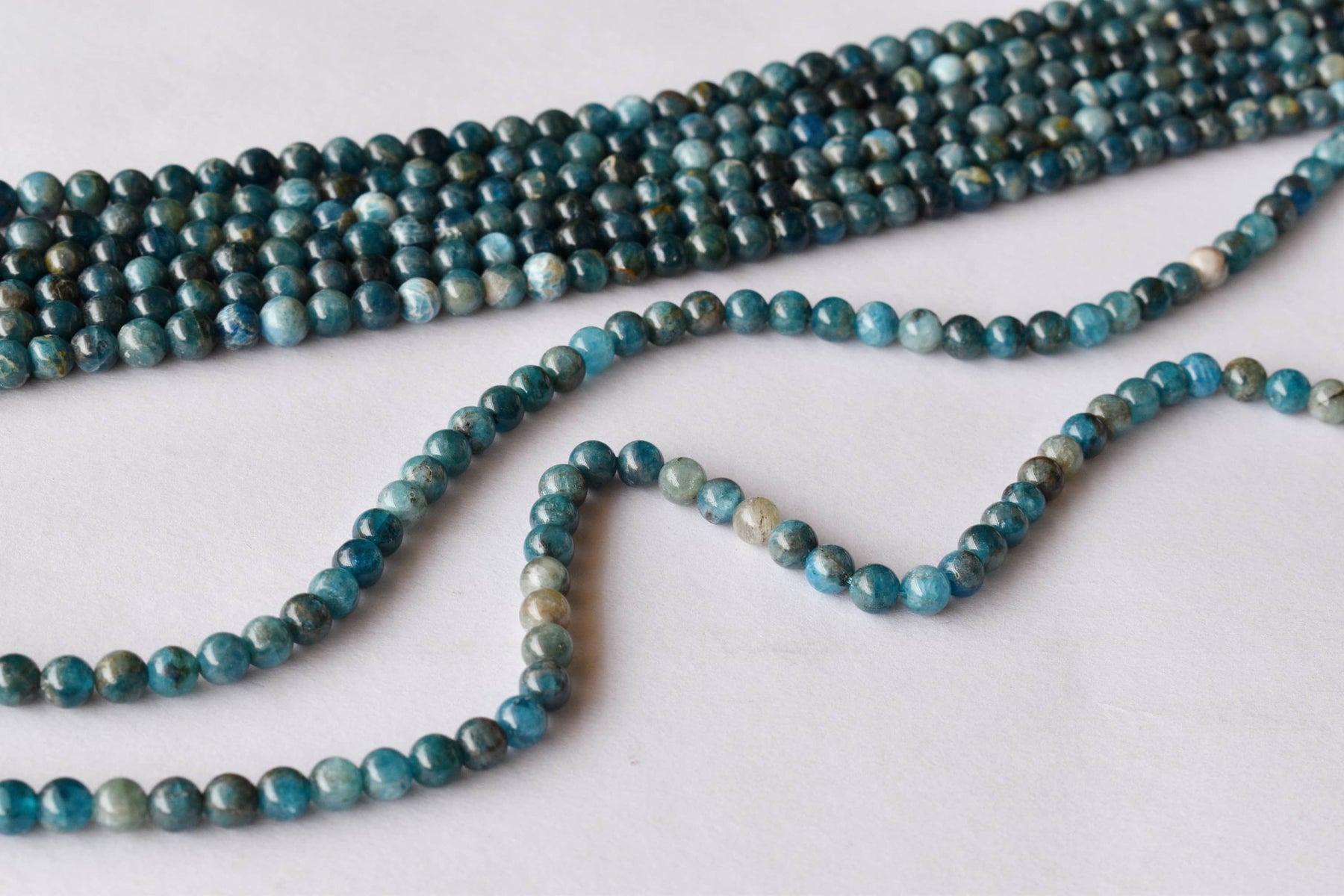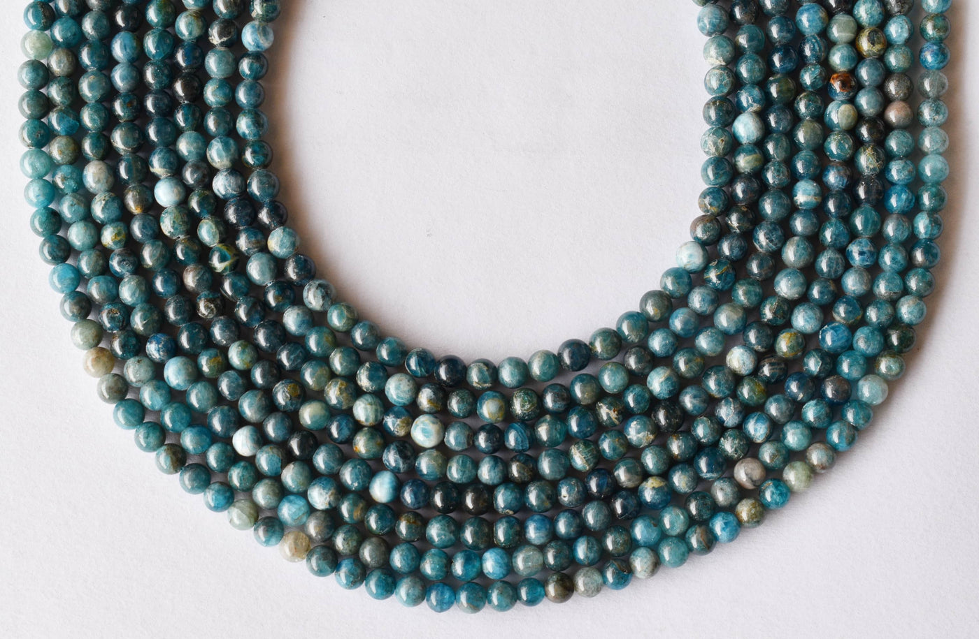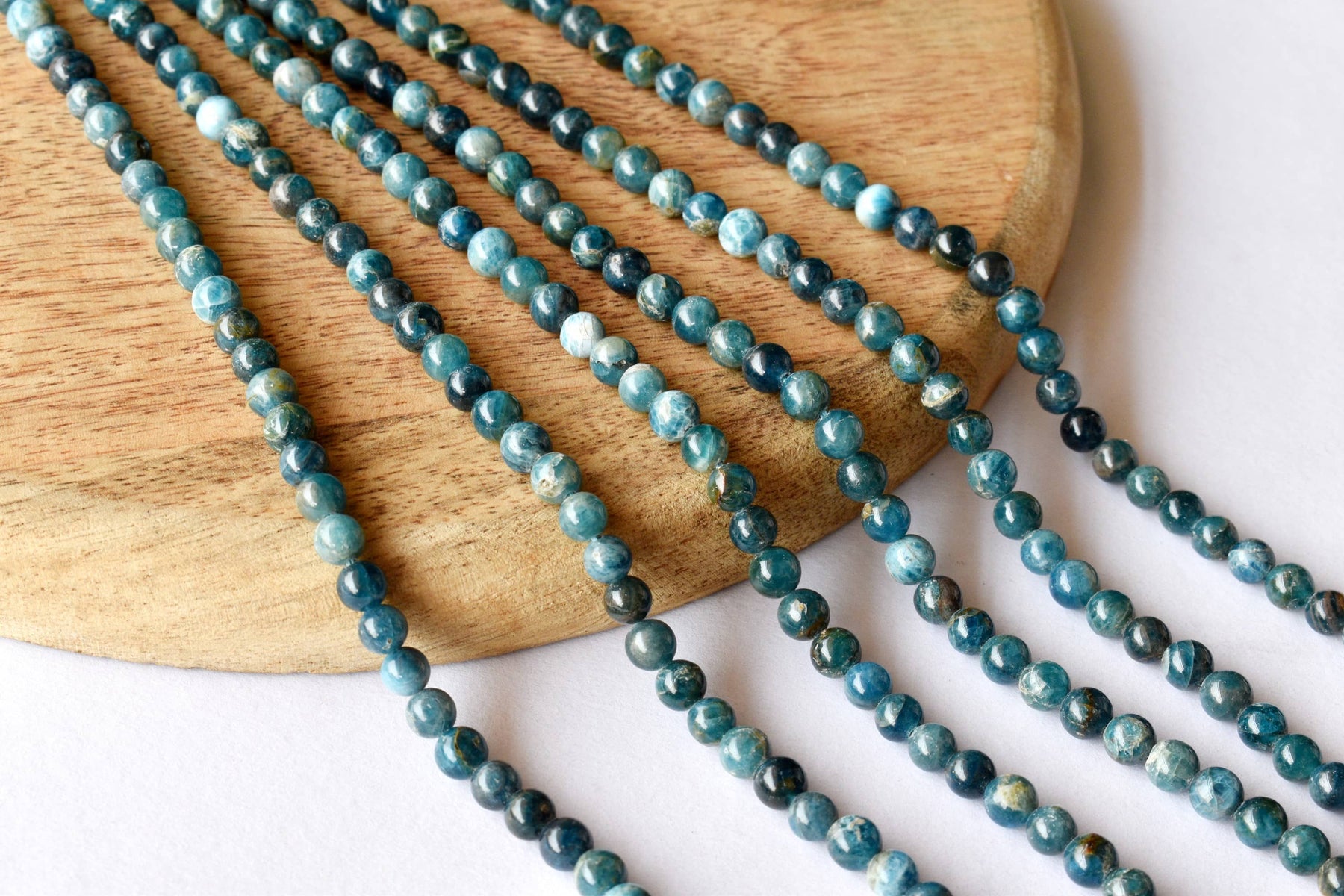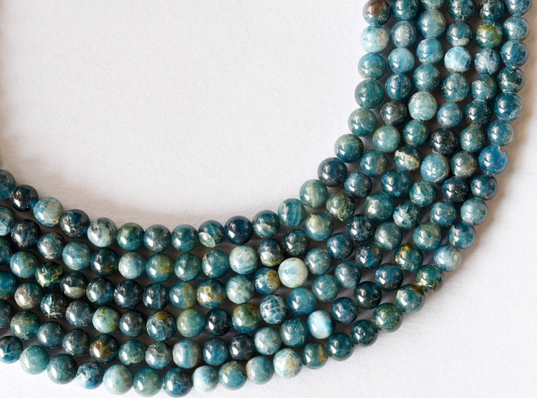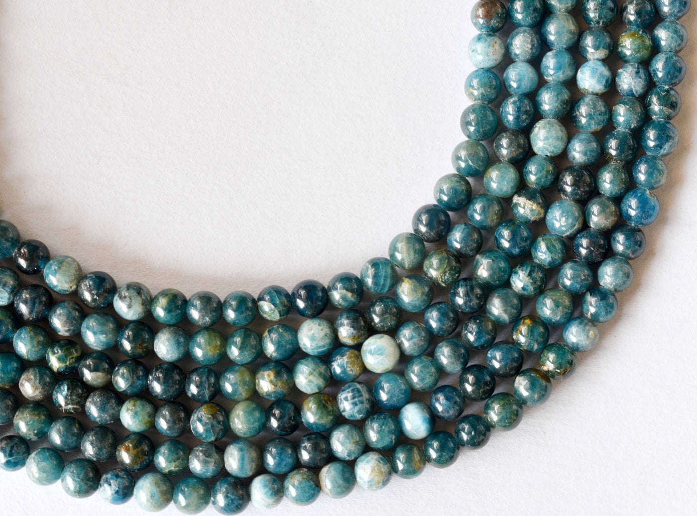 • Polished Apatite Crystal Round Beads strand is the perfect choice for any jewelry creation! These captivating beads feature a mesmerizing and deep blue-teal color and will draw attention with their unique and eye-catching look.