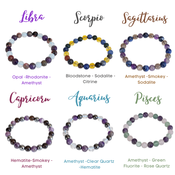 • Birthstones: Amethyst, Clear Quartz, Hematite