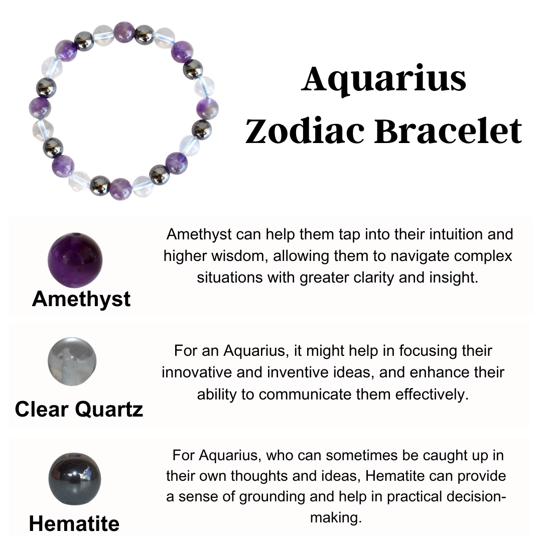 Aquarius Zodiac Crystal Bracelet, Aquarius Gifts