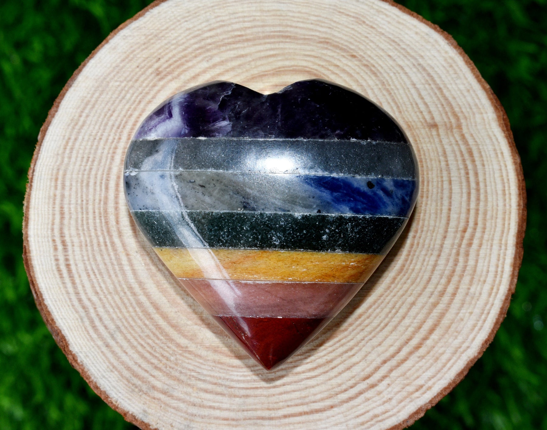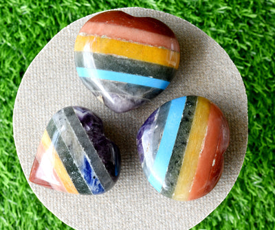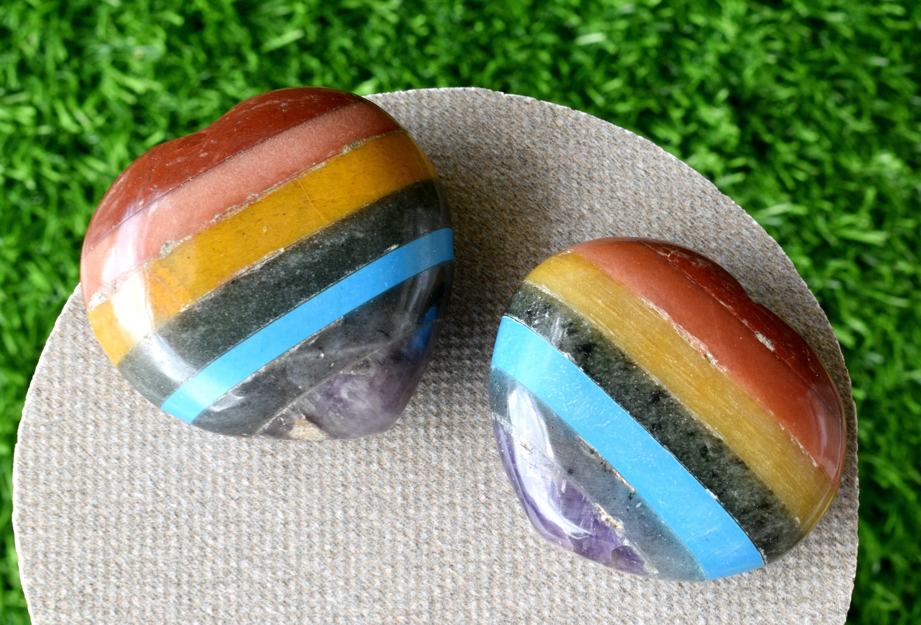 Polished Bonded Chakra Heart Crystal, Puffy Mini 2 Inch Pocket Crystal Heart.