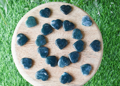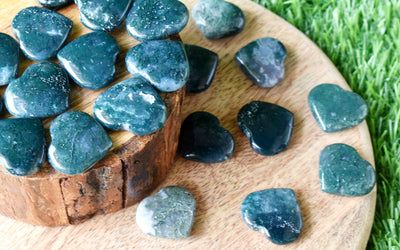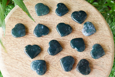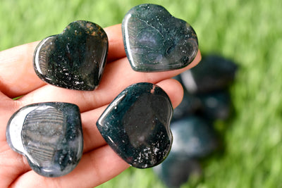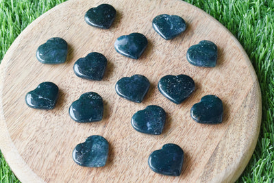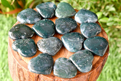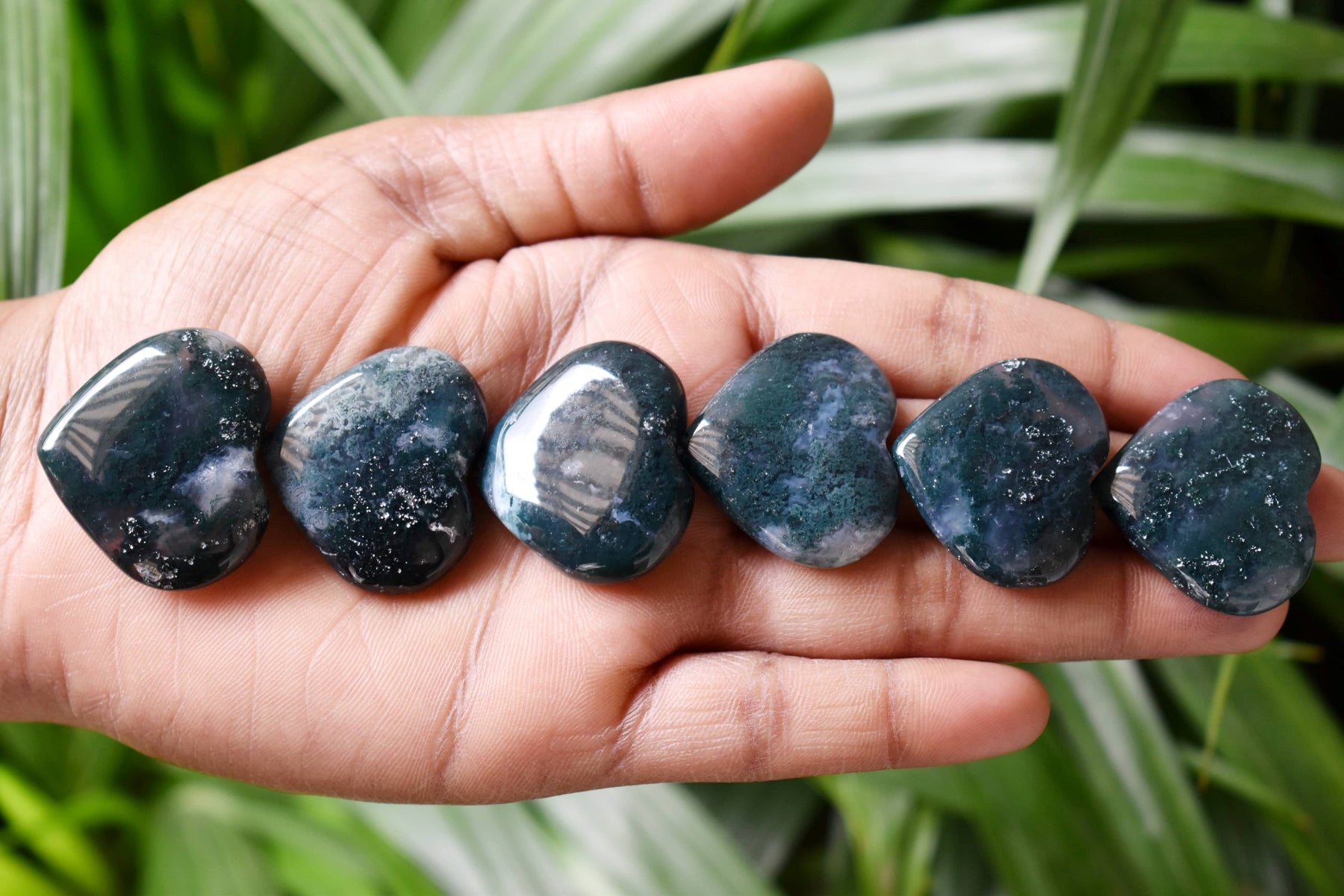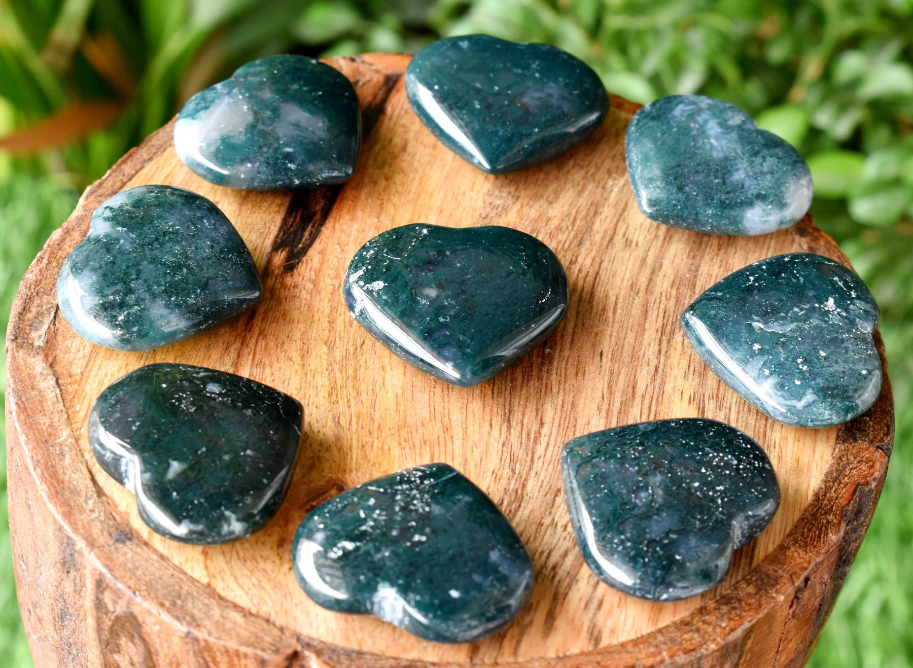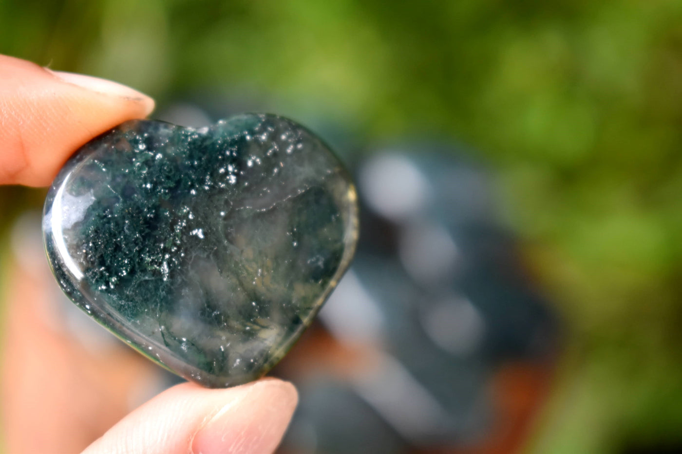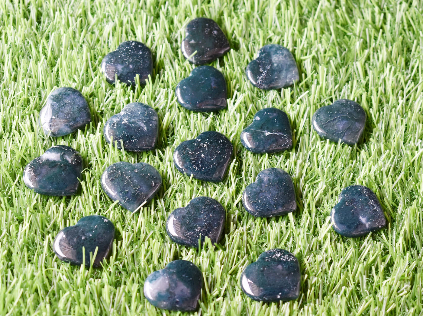 Moss Agate Heart Crystal, Puffy Mini 1 Inch Pocket Crystal Heart.