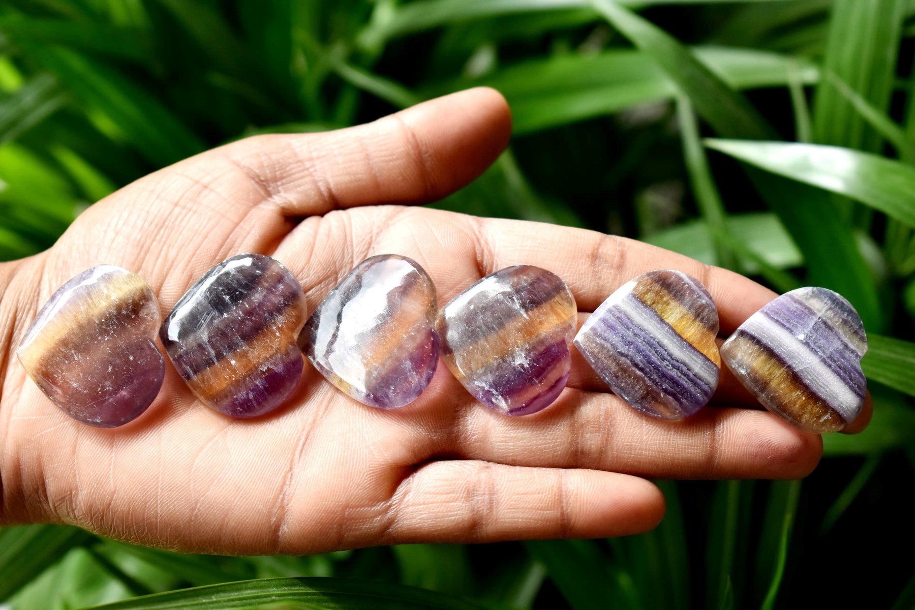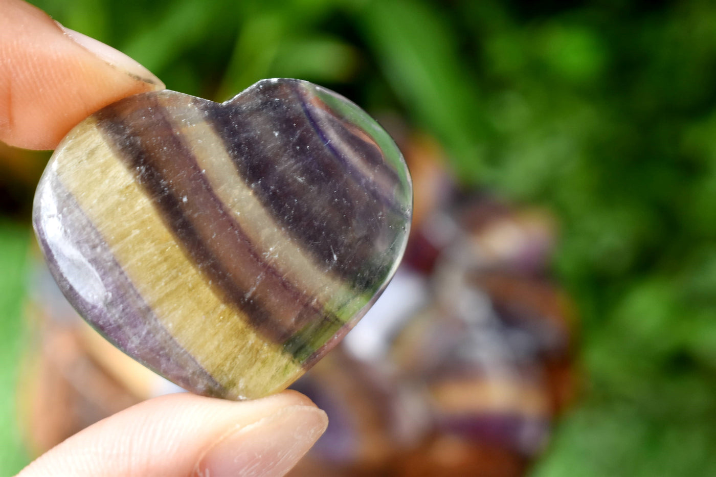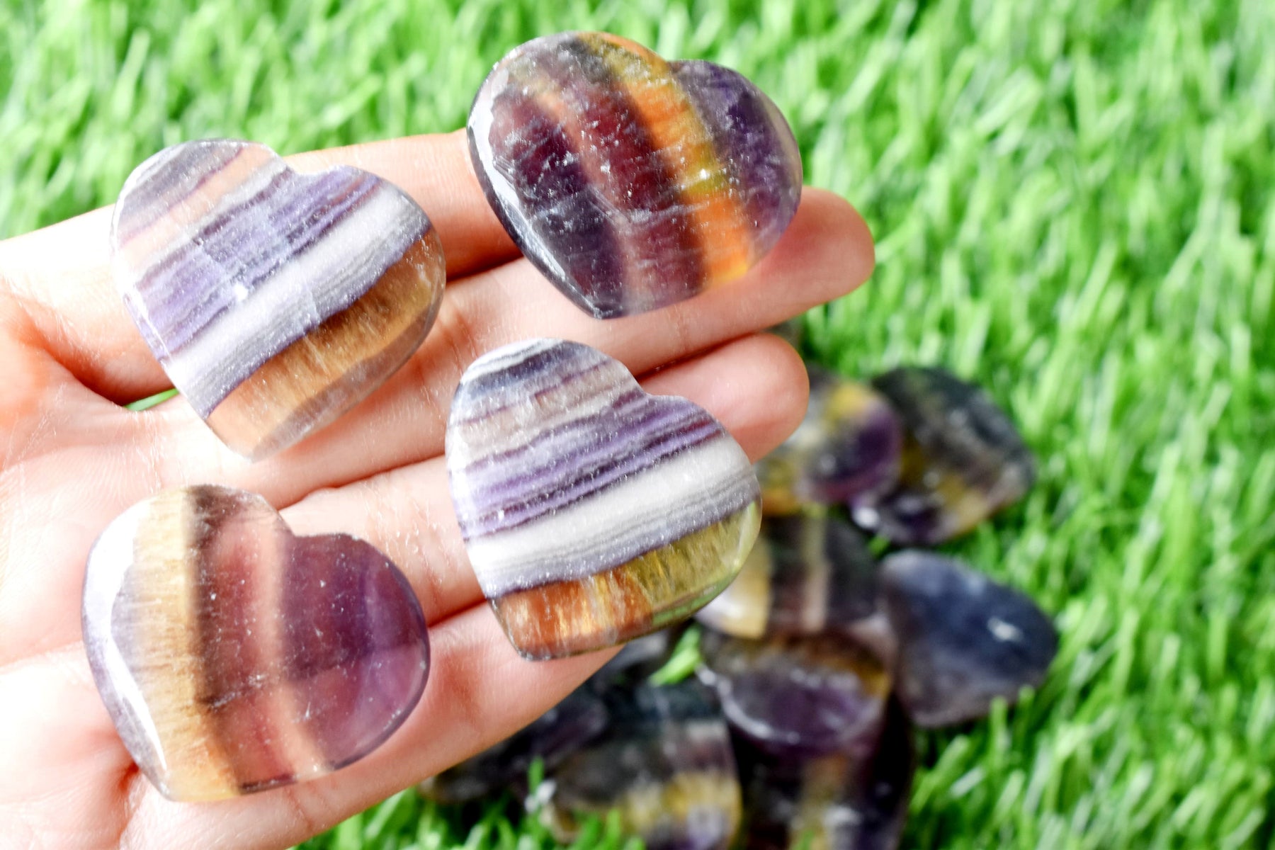 Multi Fluorite Heart Crystal, Puffy Mini 1 Inch Pocket Crystal Heart
