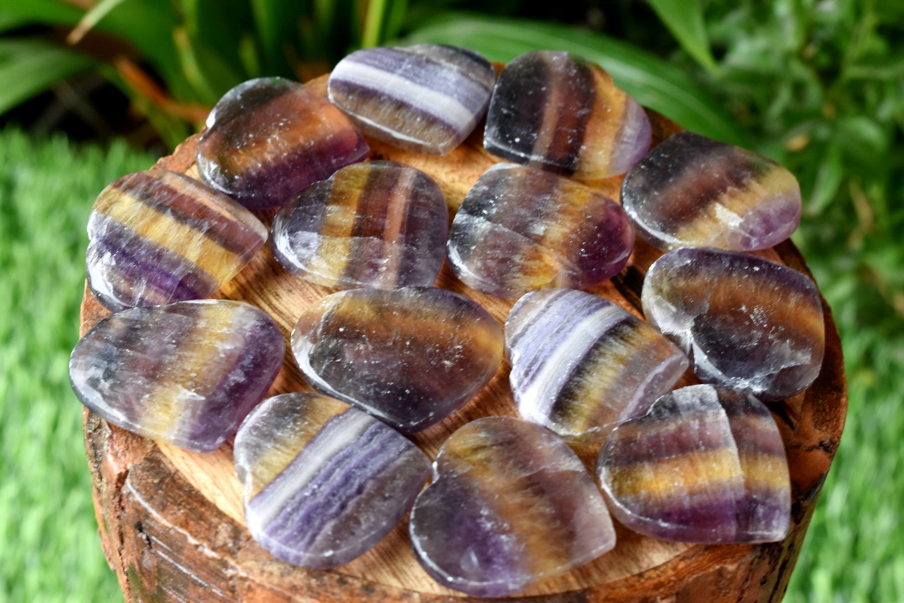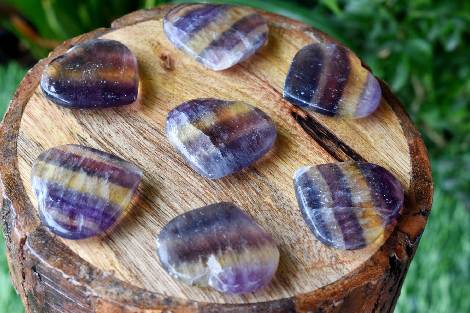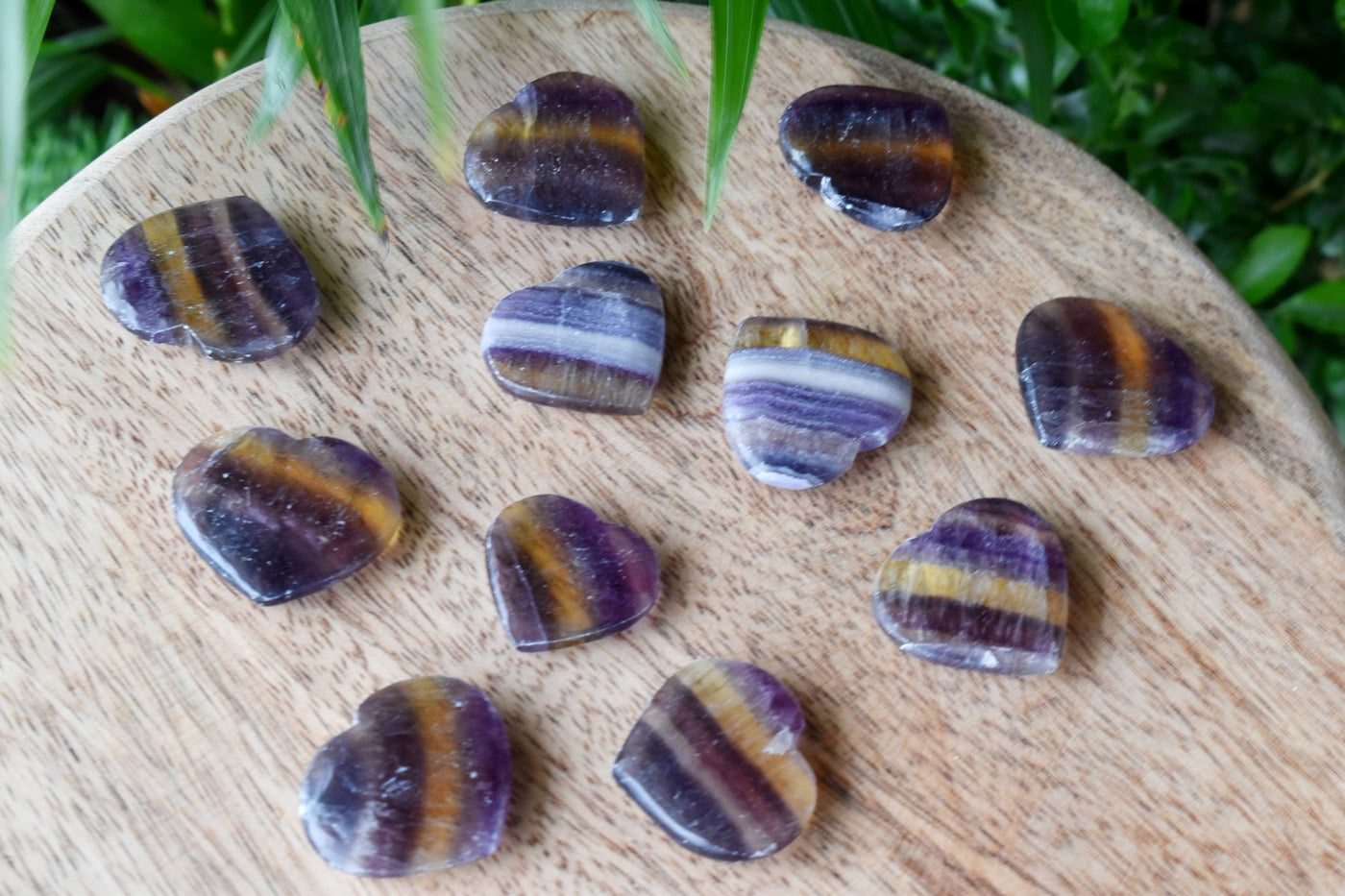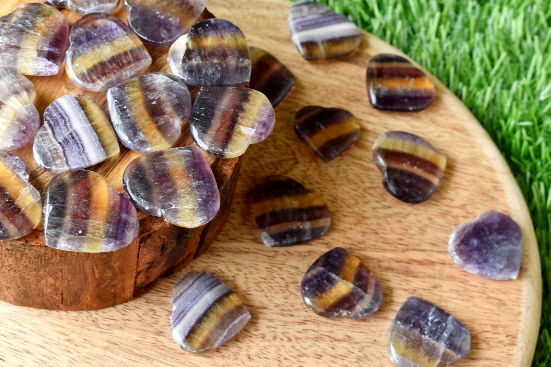 Multi Fluorite Heart Crystal, Puffy Mini 1 Inch Pocket Crystal Heart