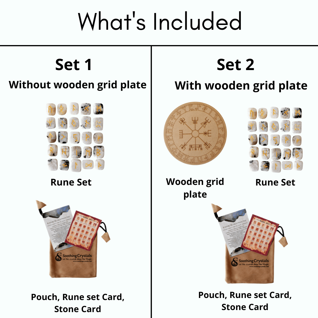 • Set 2 : Runes, Pouch, Info Cards + 6" Wooden Grid Plate