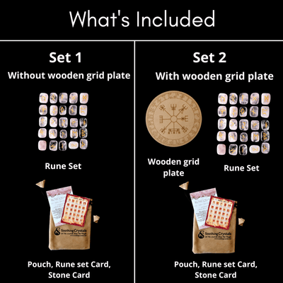 • Set 2 : Runes, Pouch, Info Cards + 6" Wooden Grid Plate