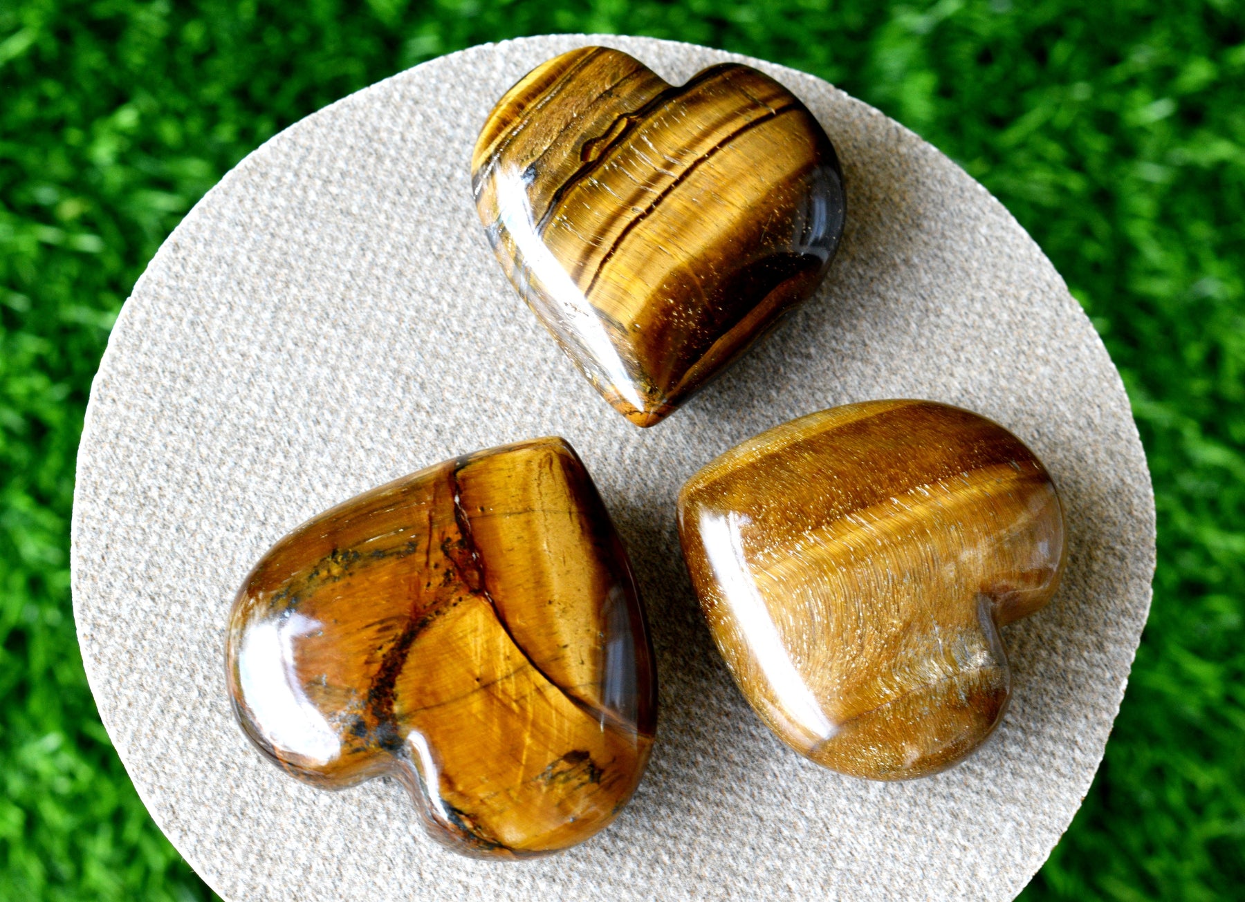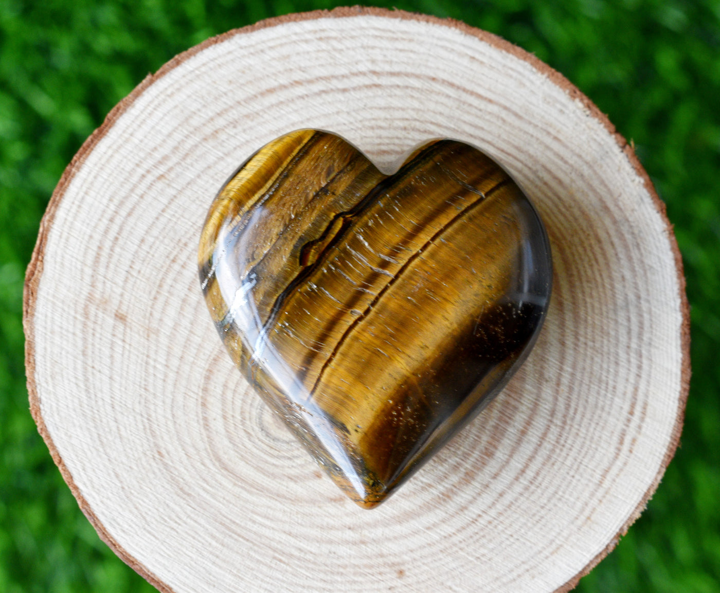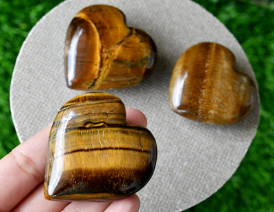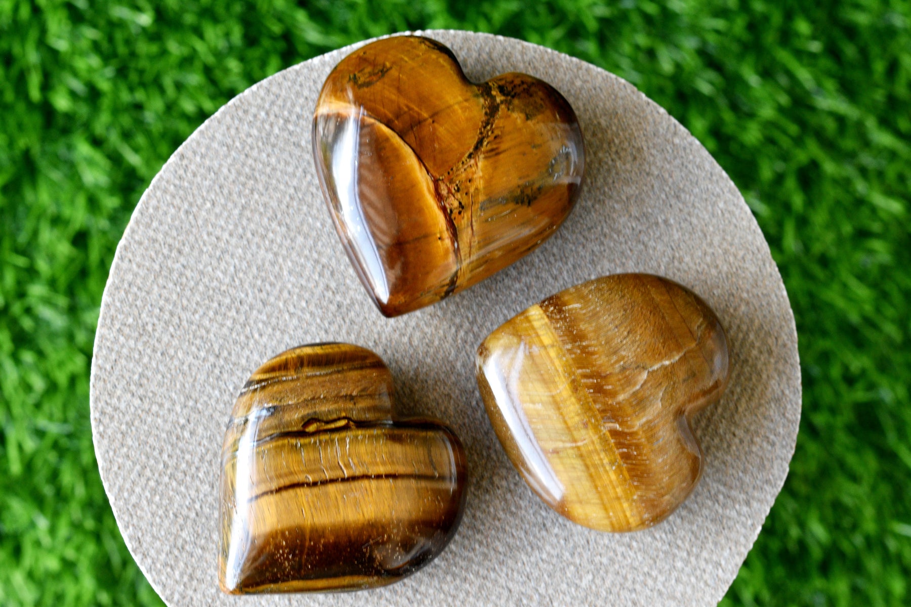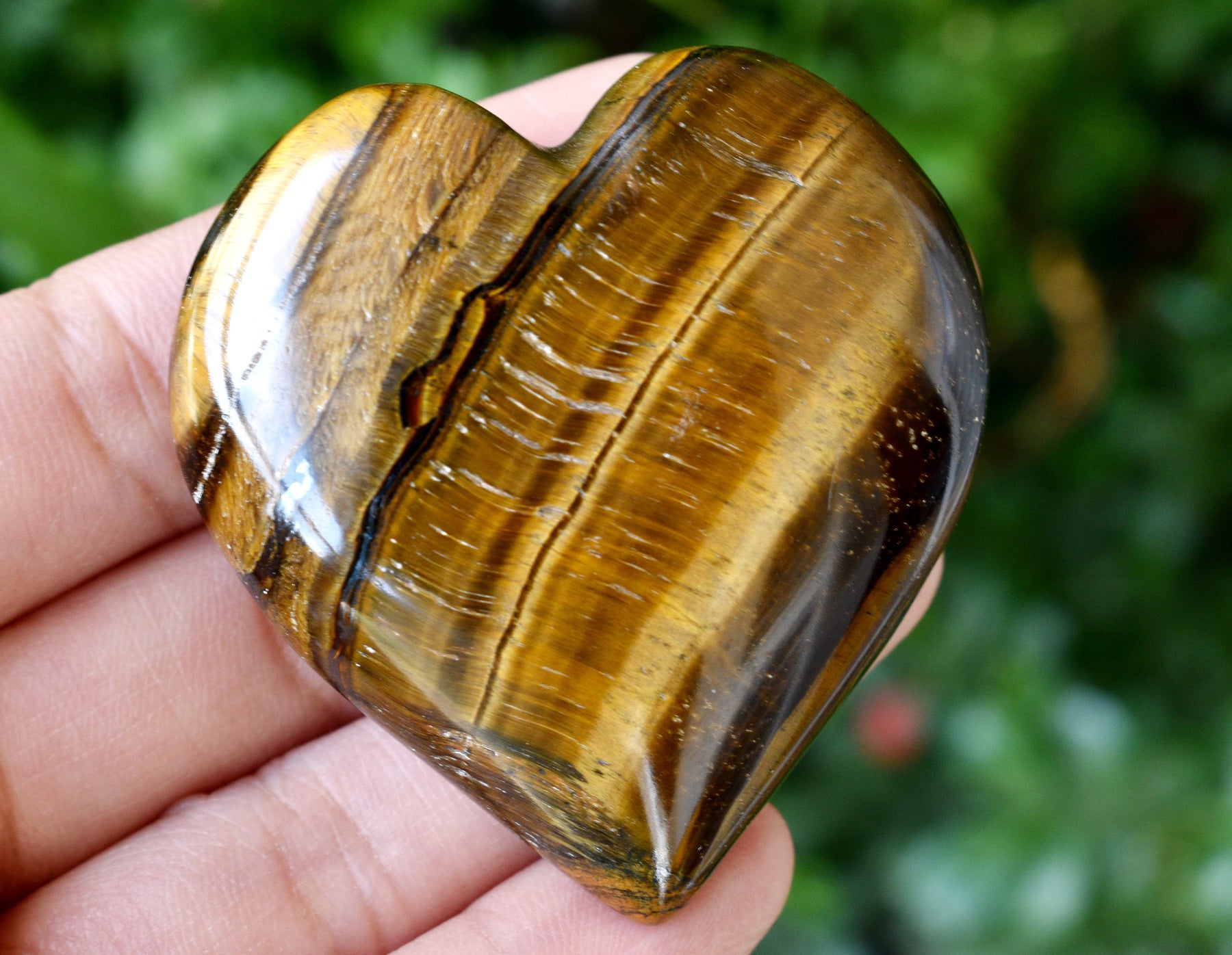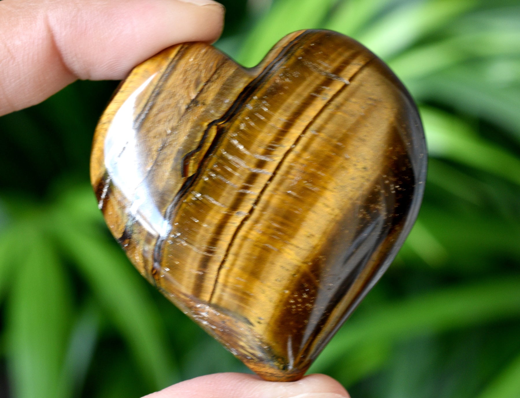 Polished Tiger Eye Heart Crystal, Puffy Mini 2 Inch Pocket Crystal Heart