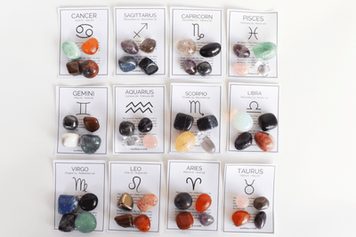 • 💎SET1 : 4pcs Tumbled Stones, Zodiac Stone Card.