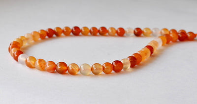 • These gorgeous carnelian stones have been carefully polished to bring out their natural luster and beauty. Each of the beads on this strand is unique, but all come together to create an eye-catching piece that’s sure to turn heads. Their warm, earthy red tones create a calm, soothing energy that can be used to help focus and re-energize.