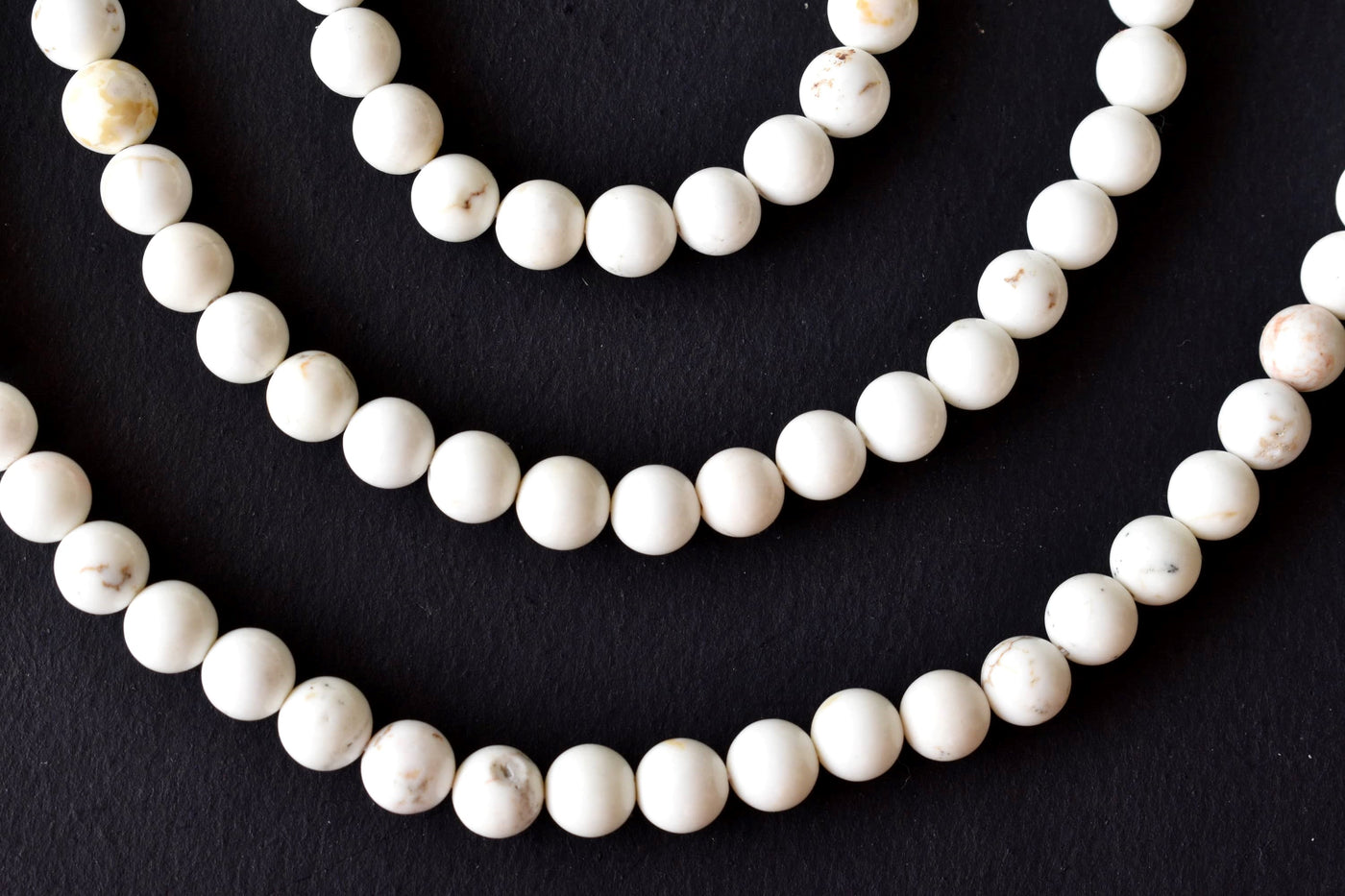 • The natural Copper Howlite crystals have a distinctive pale gray color with brown veining that gives each bead a unique appearance. Howlite is said to be a stone of awareness, helping its wearer to make calm and rational decisions.