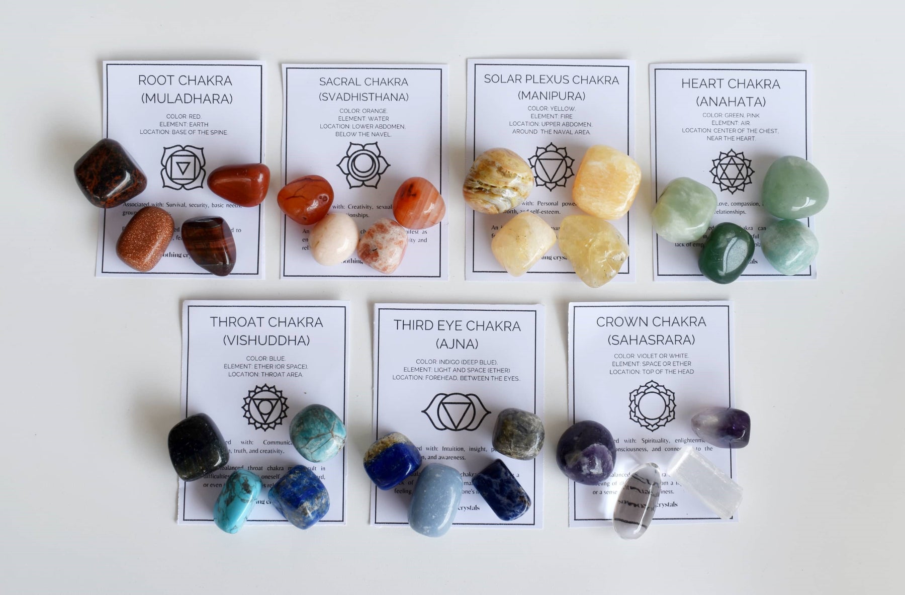 💎SET1 : 4pcs Tumbled Stones, Chakra's Info Card.