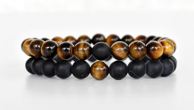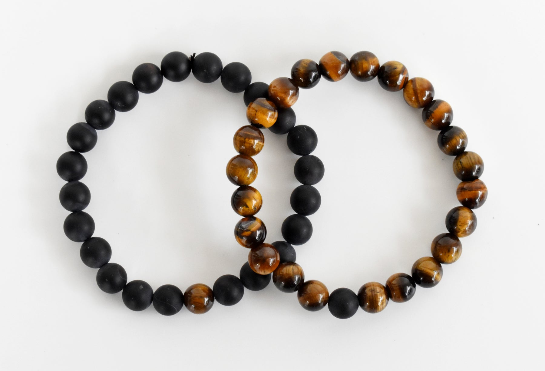Tiger Eye Black Onyx Matt Couple Bracelets, Anniversary Gift (Focus and Creativity)