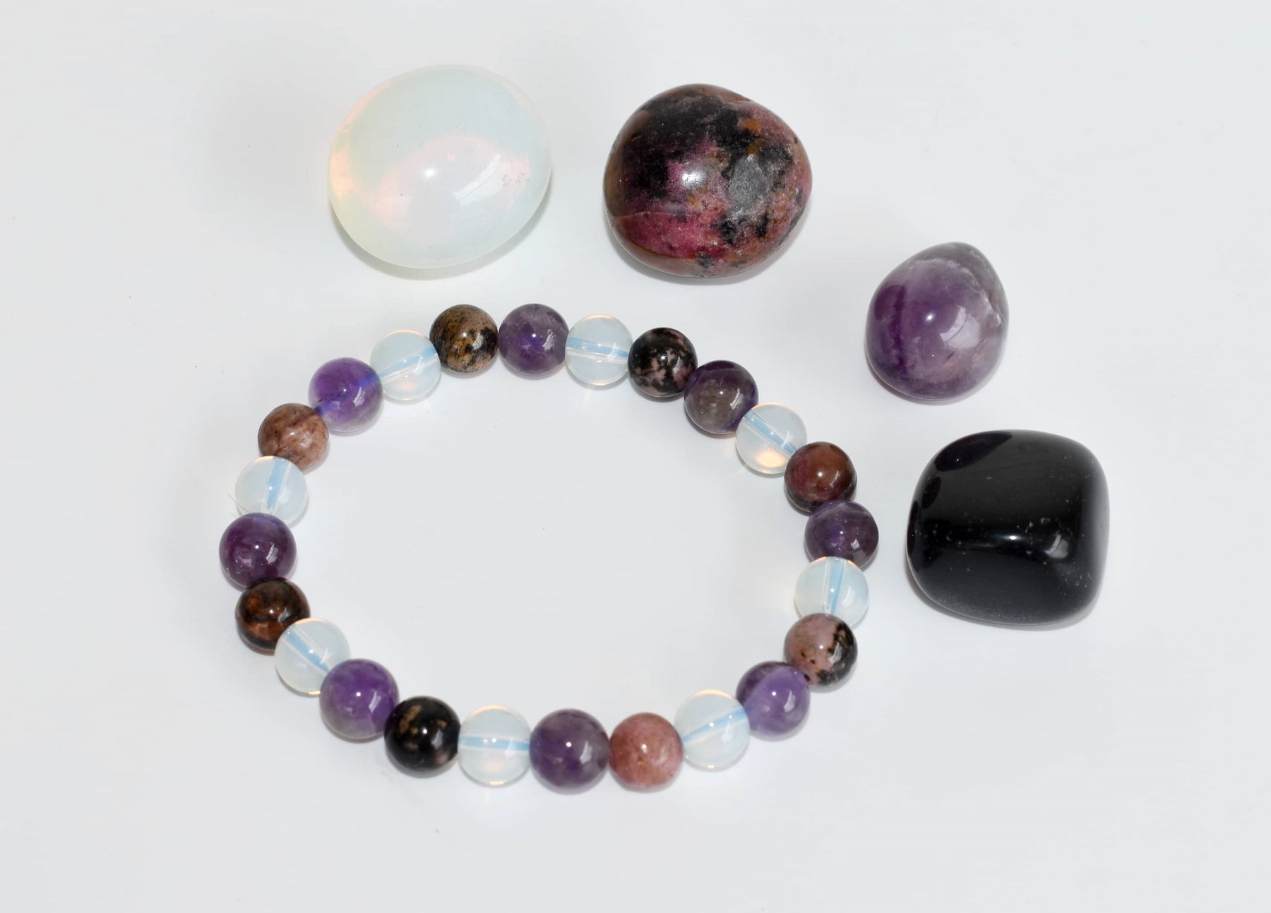 • Gemstones : Opal, Rhodonite, Amethyst, Black Obsidian.