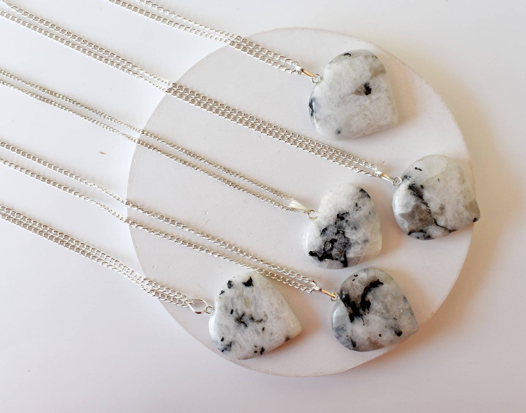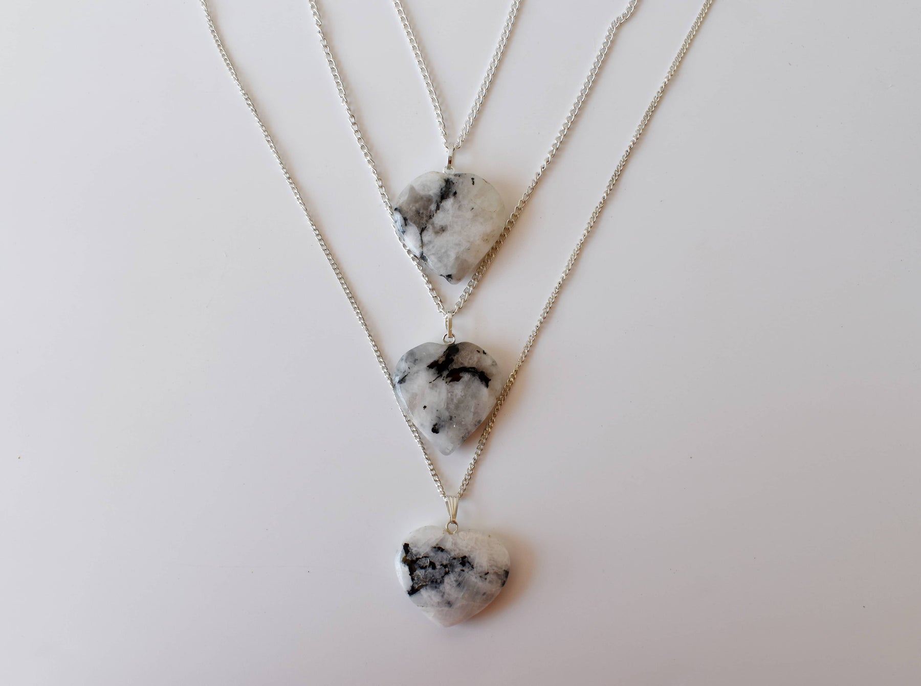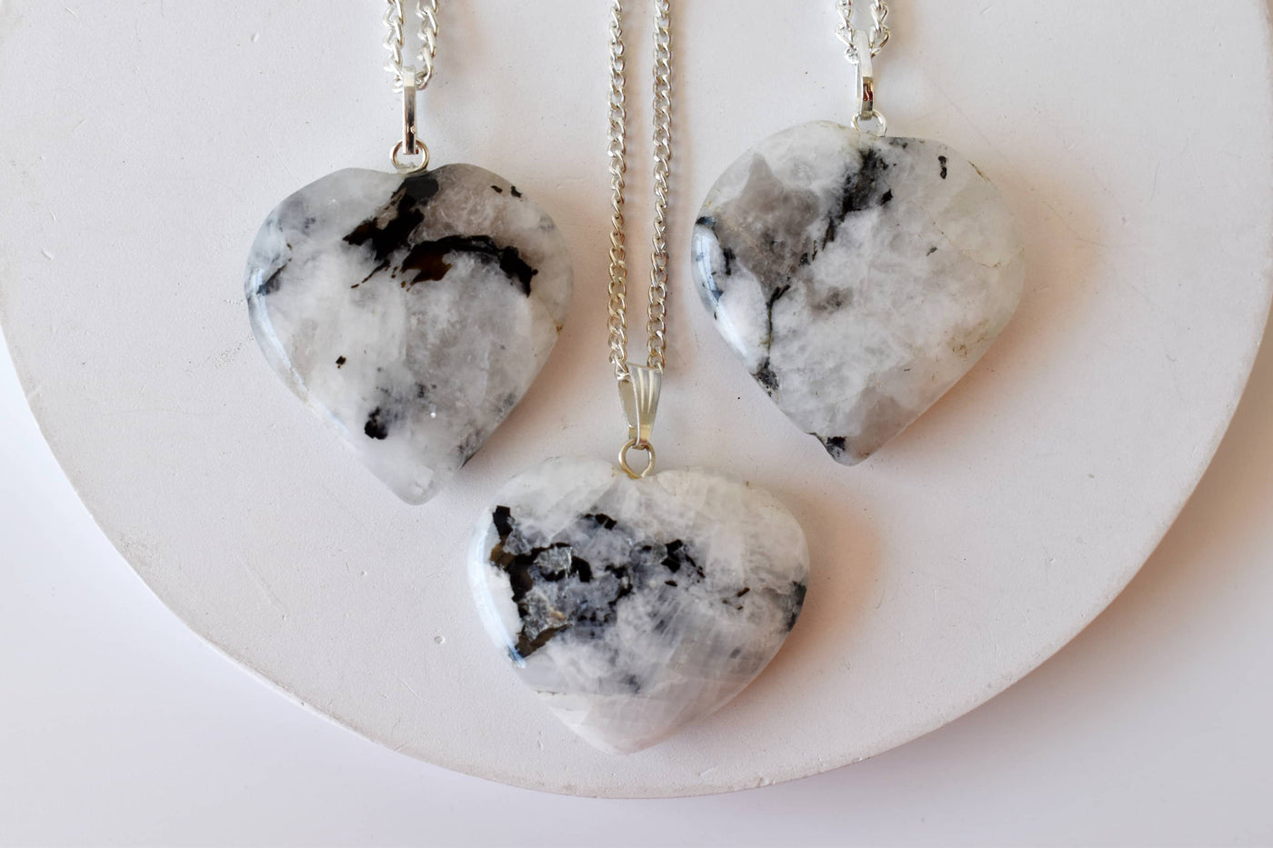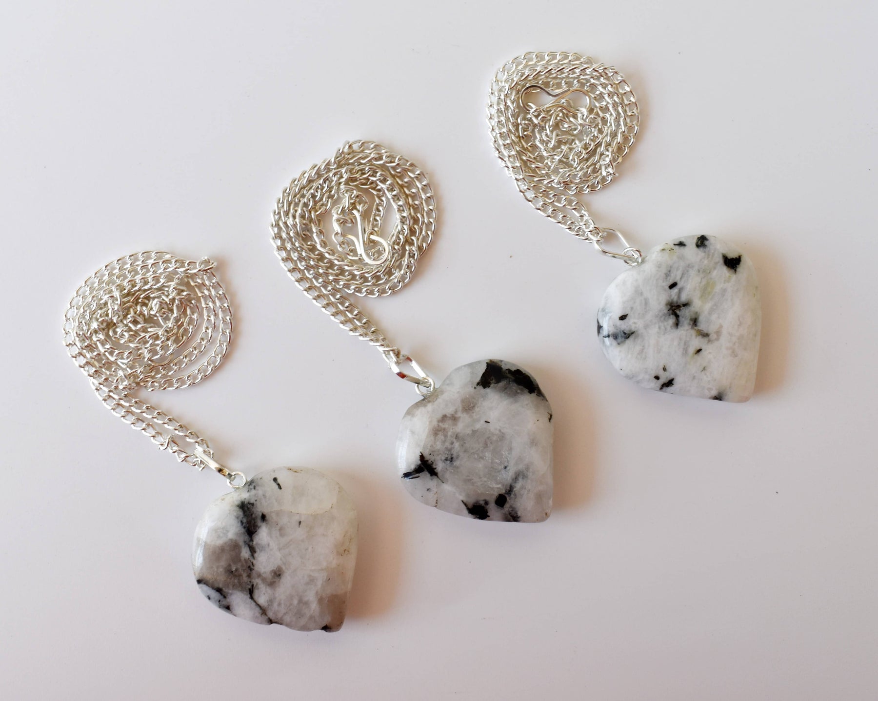 Natural Rainbow Moonstone Crystal Heart Pendant, Genuine Heart Shaped Necklaces