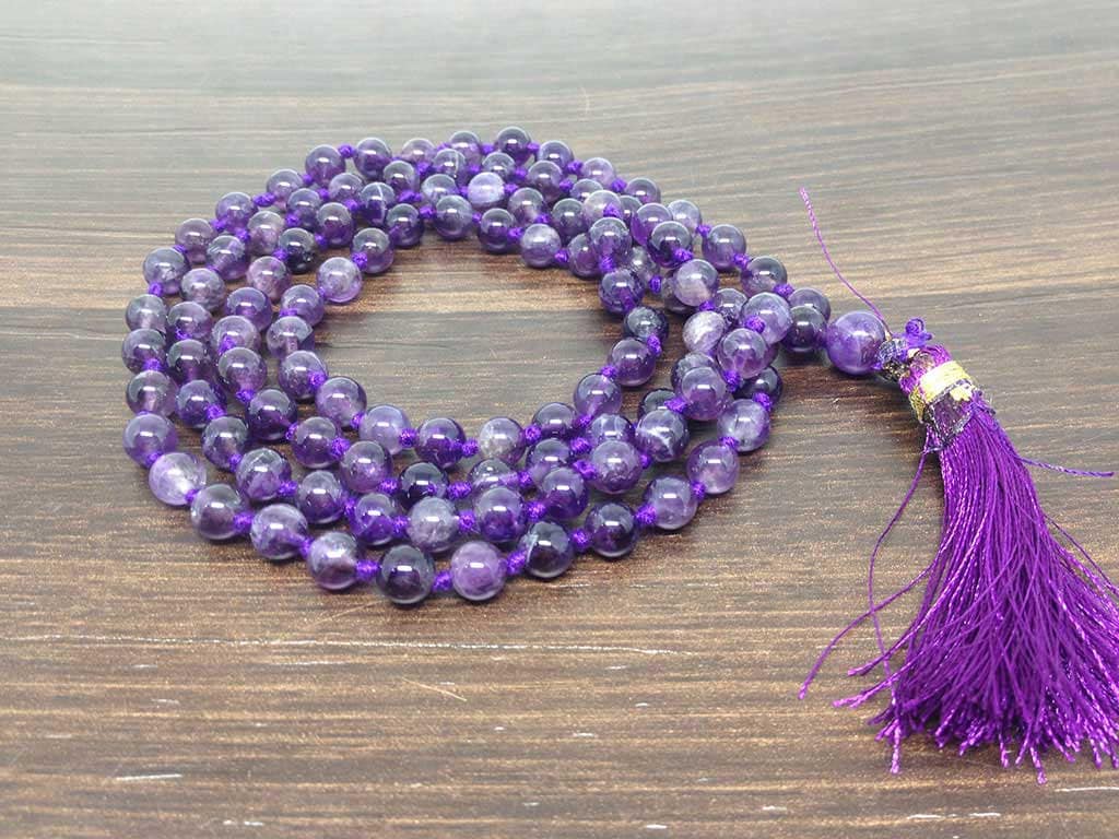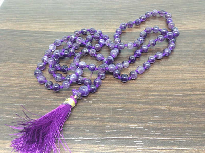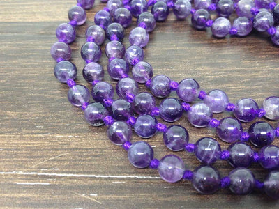One (1) Natural 6mm Amethyst Knotted Mala With 108 Prayer Beads For Mediation