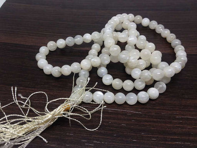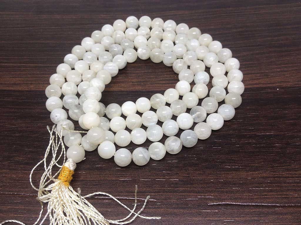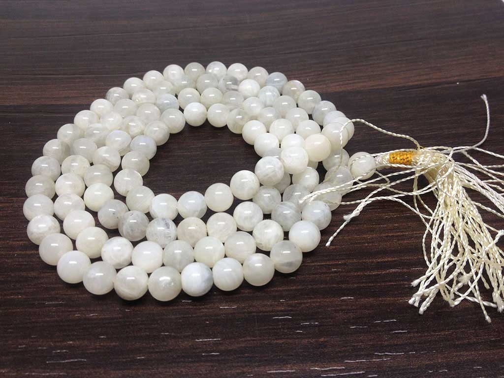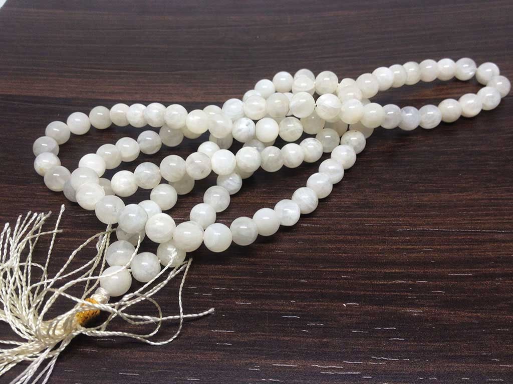 White Rainbow Moonstone Mala With 108 Prayer Beads.