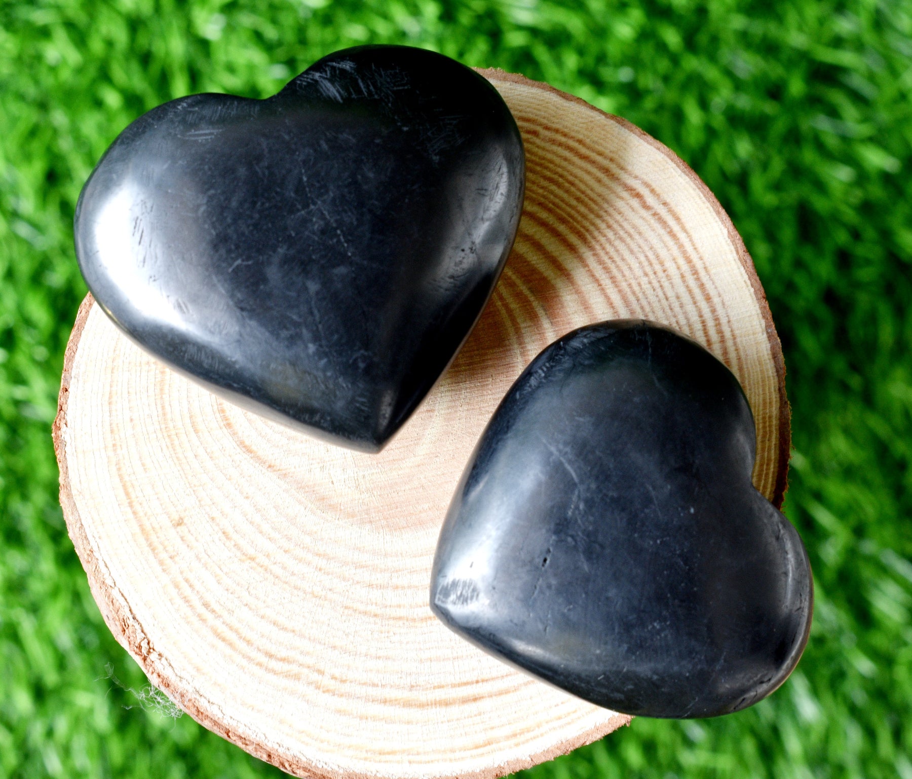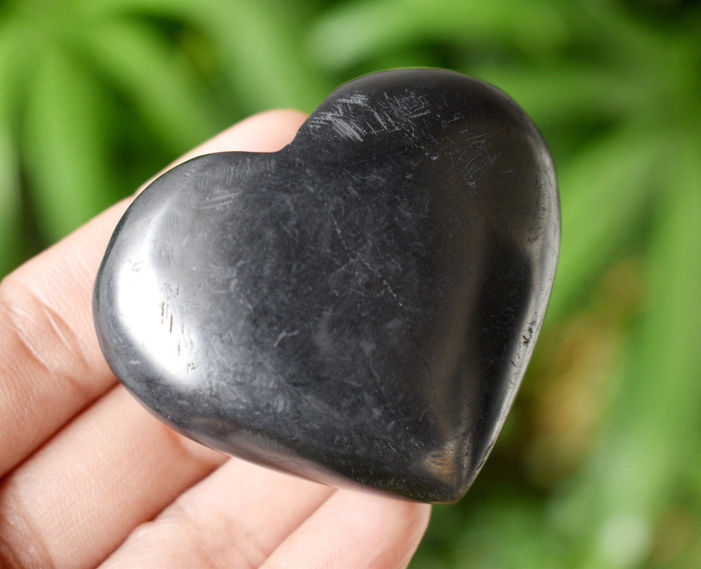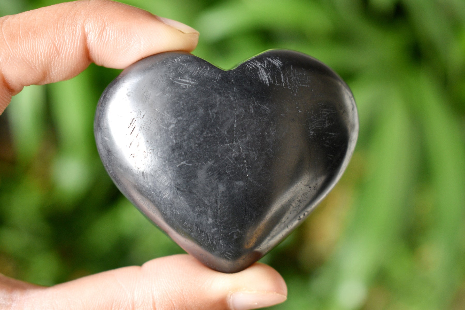 Polished Black Shungite Heart Crystal, Puffy Mini 2 Inch Pocket Crystal Heart