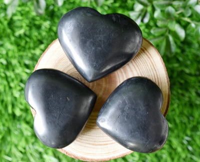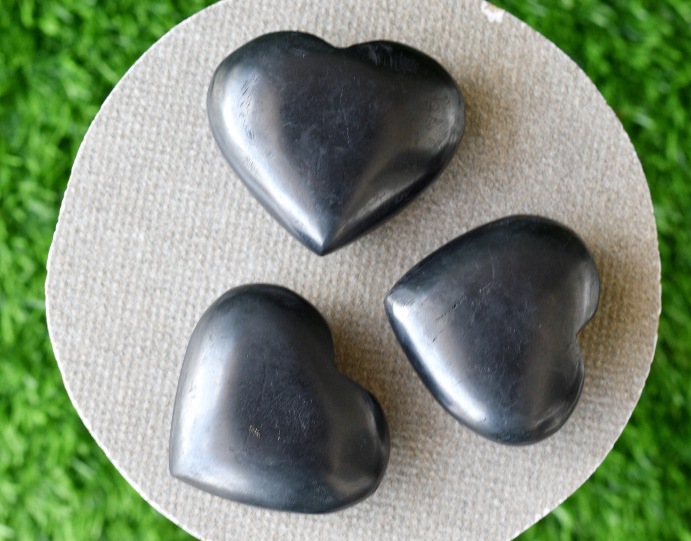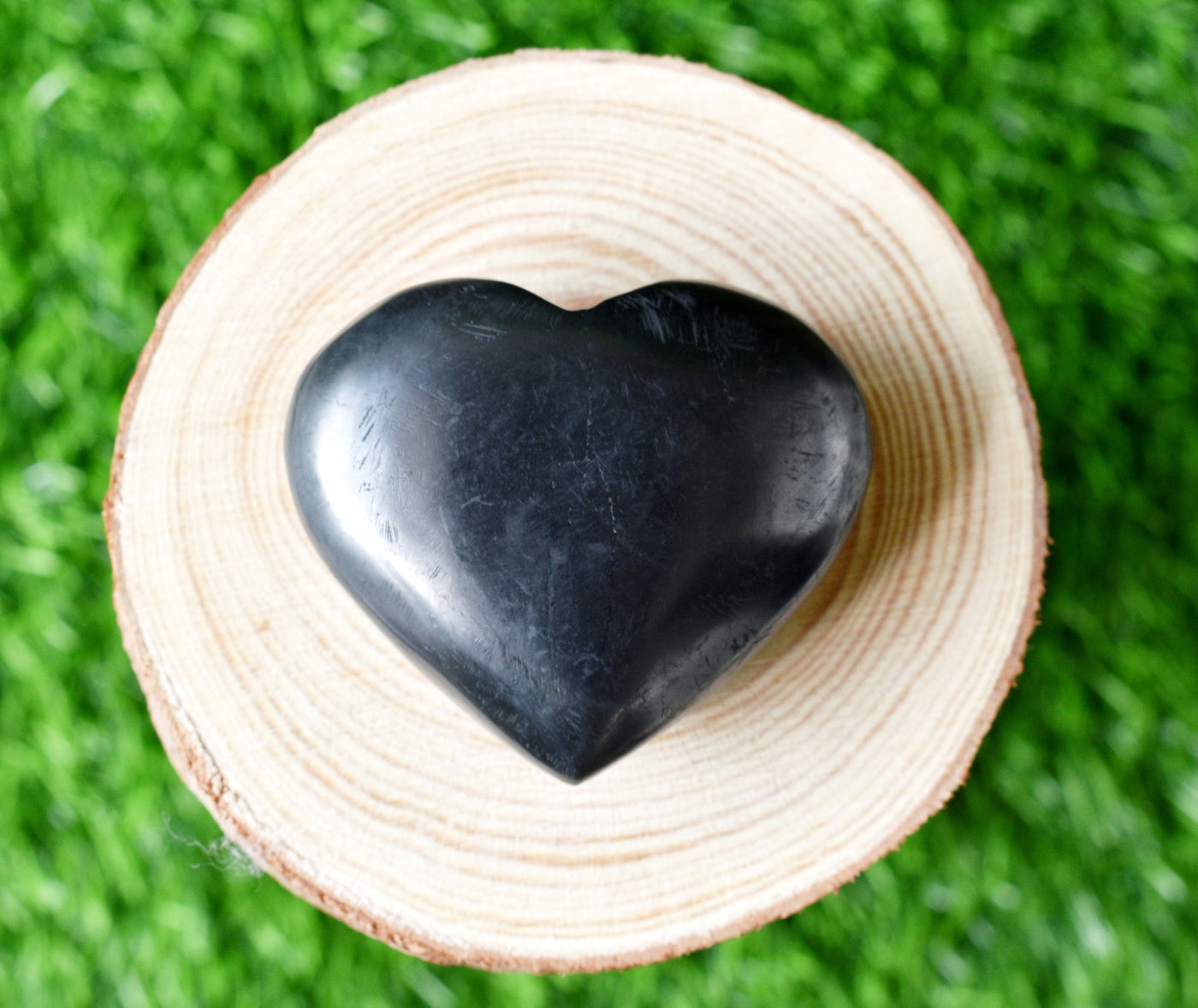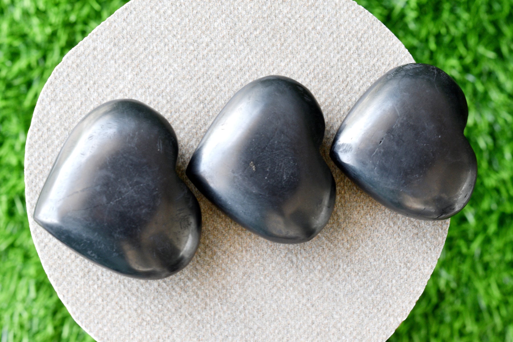 Polished Black Shungite Heart Crystal, Puffy Mini 2 Inch Pocket Crystal Heart