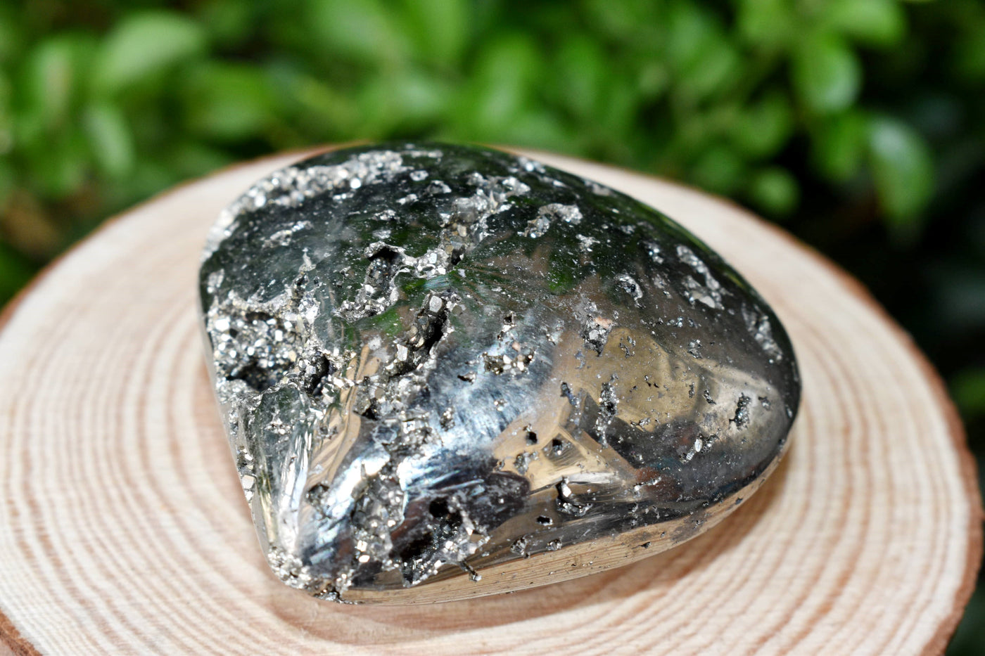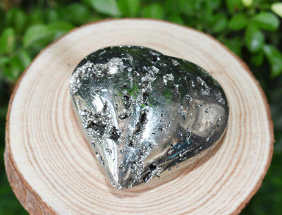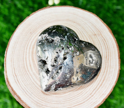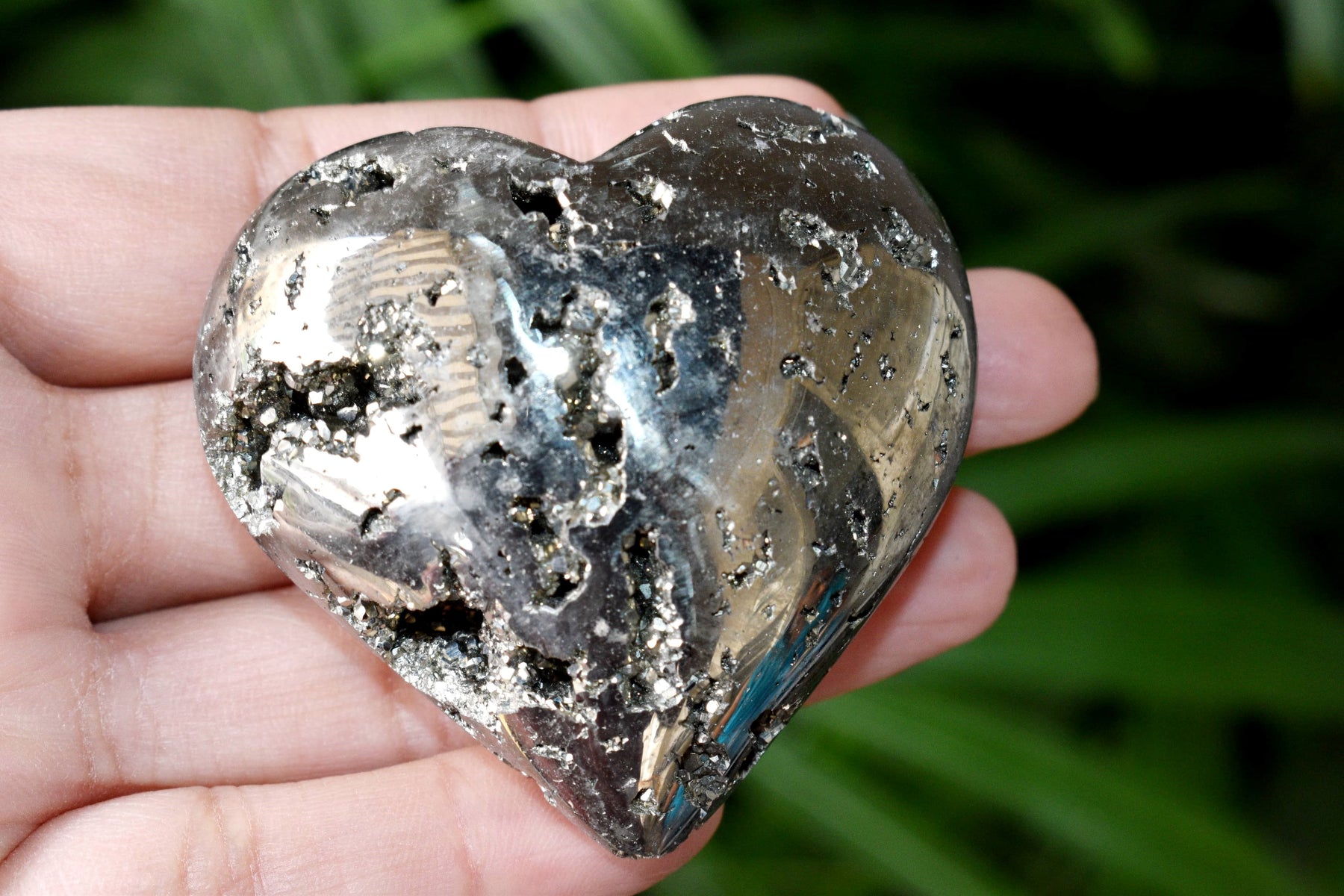 Polished Pyrite Druzy Heart Crystal, Puffy Mini 2 Inch Pocket Crystal Heart