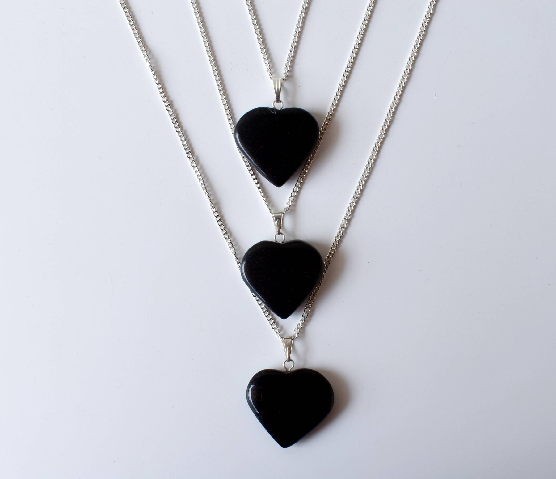 Real Black Tourmaline Crystal Heart Pendant, Genuine Heart Shaped Necklaces
