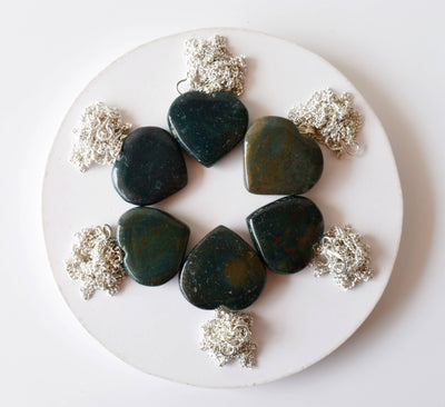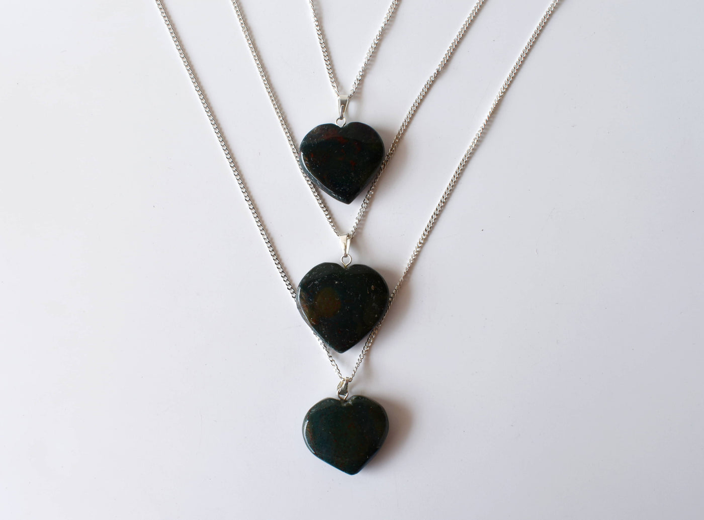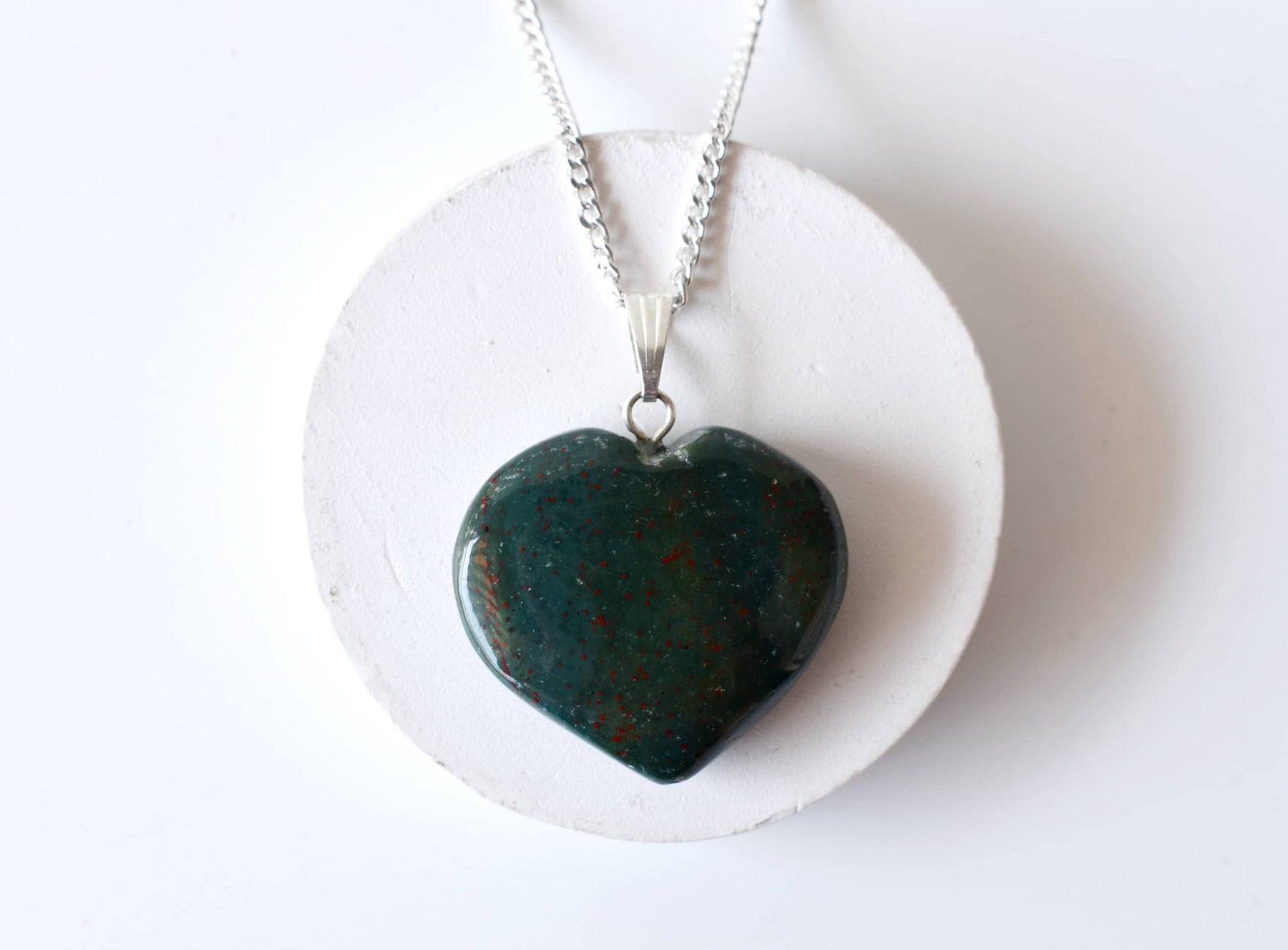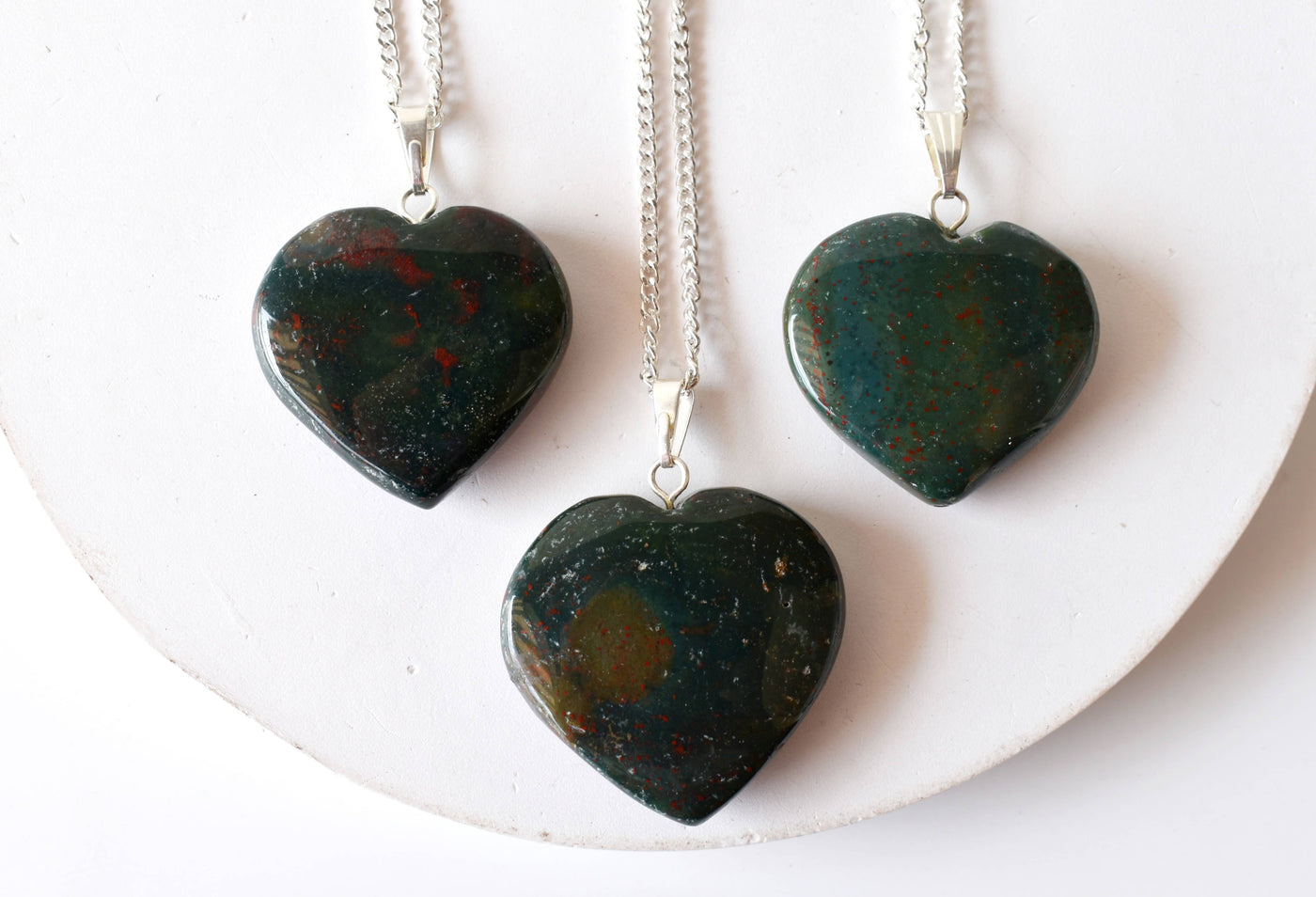 Real Bloodstone Crystal Heart Pendant, Genuine Heart Shaped Necklaces