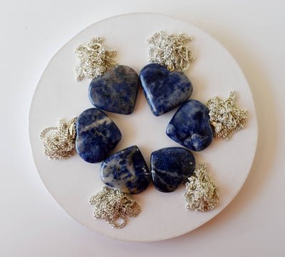 Real Sodalite Crystal Heart Pendant, Genuine Heart Shaped Necklaces