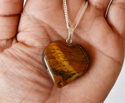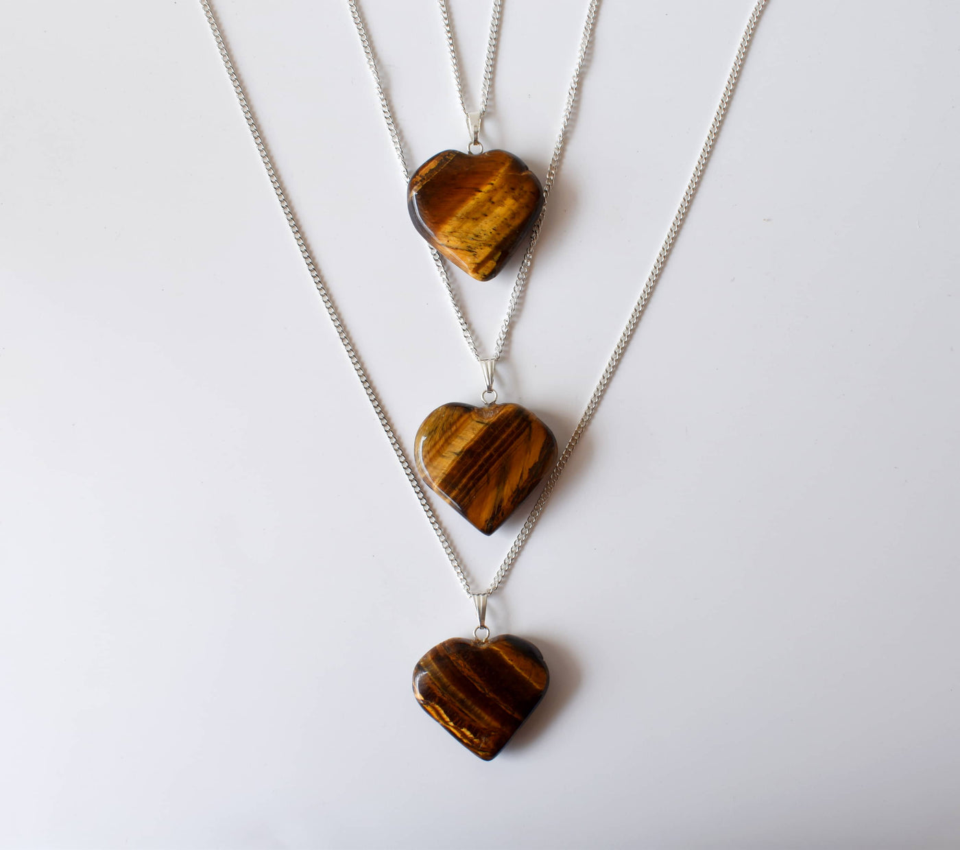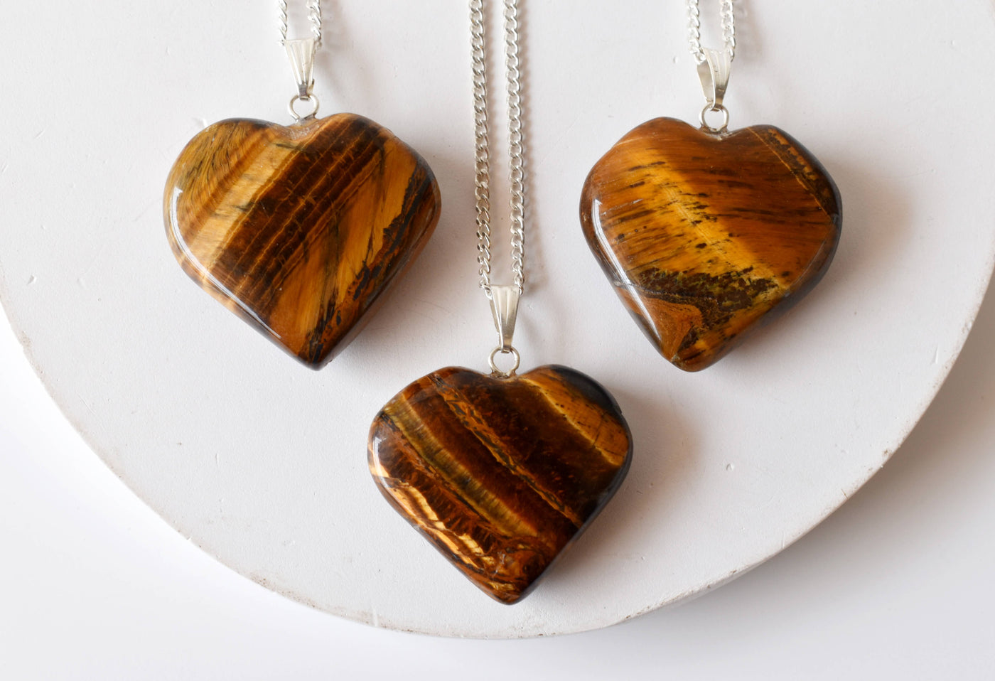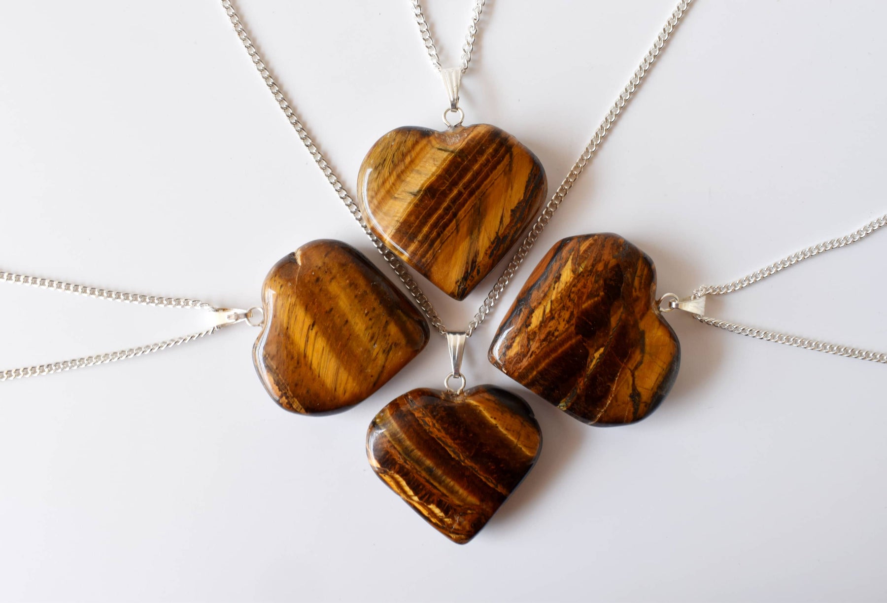 Real Tiger Eye Crystal Heart Pendant, Genuine Heart Shaped Necklaces