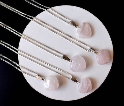 Rose Quartz Heart Pendant, Heart Shaped Stone Rose Quartz Pendants.