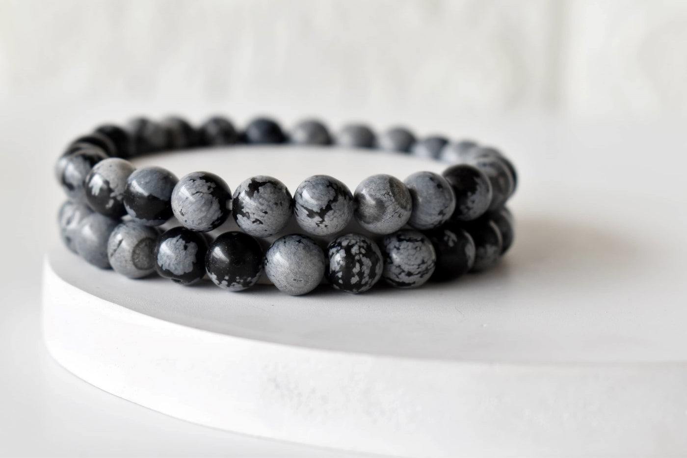 Black Snowflake Obsidian Bracelet (Symbolizing Purity and Inner Peace).